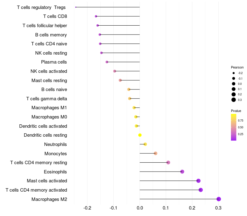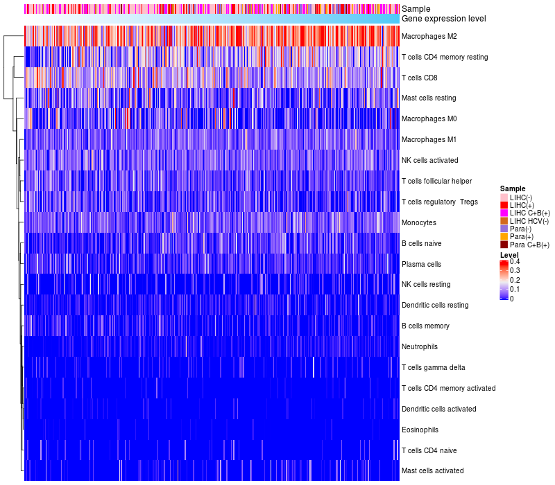 Relationship between gene expression and immune infiltrating cell level