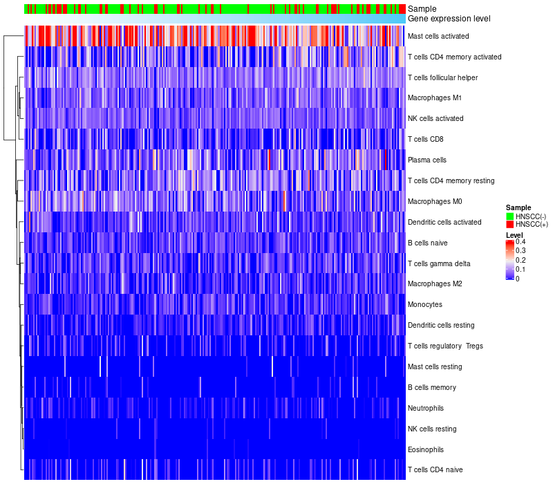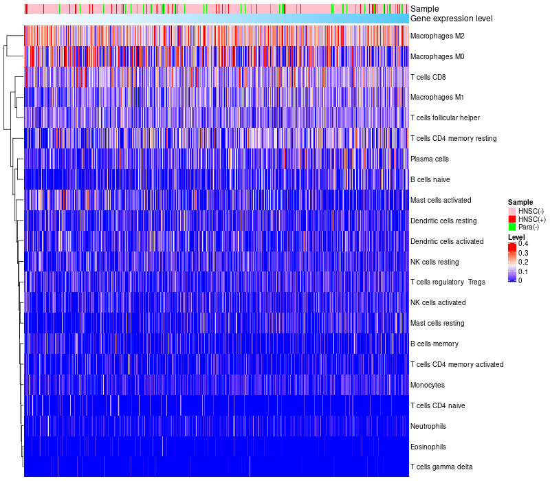 Head and Neck squamous cell carcinoma(HPV-)(483),Head and Neck squamous cell carcinoma(HPV+)(39),Paracancerous(HPV-)(44) |