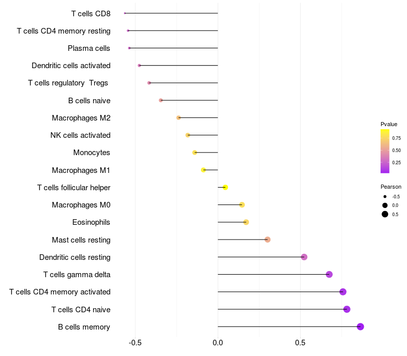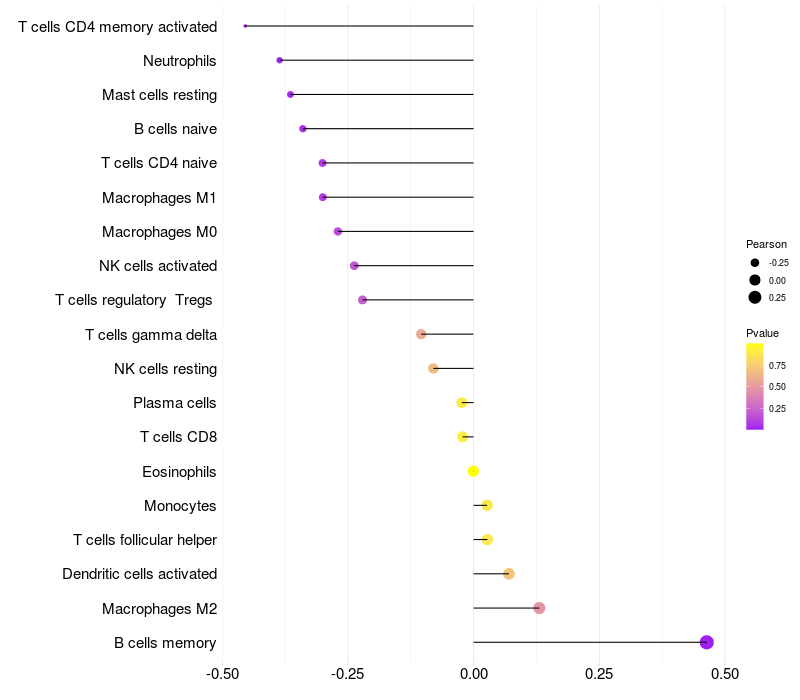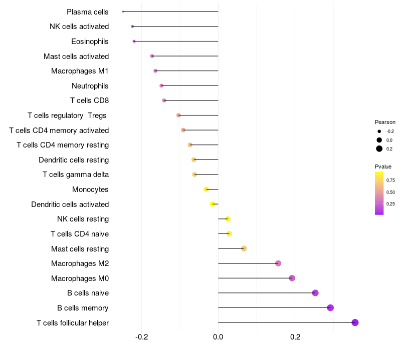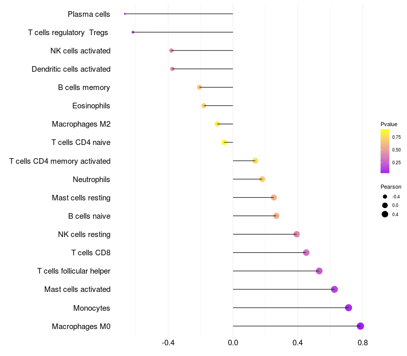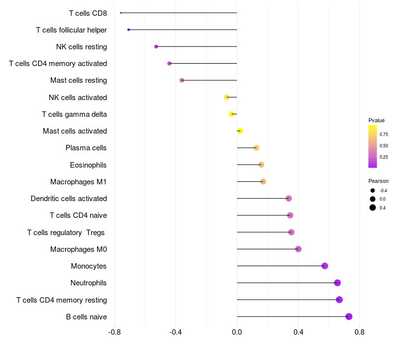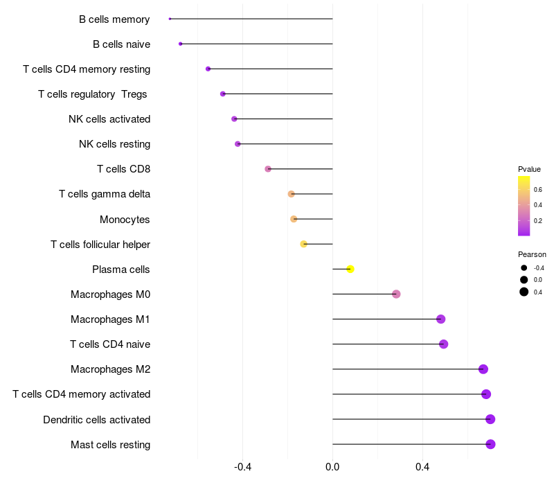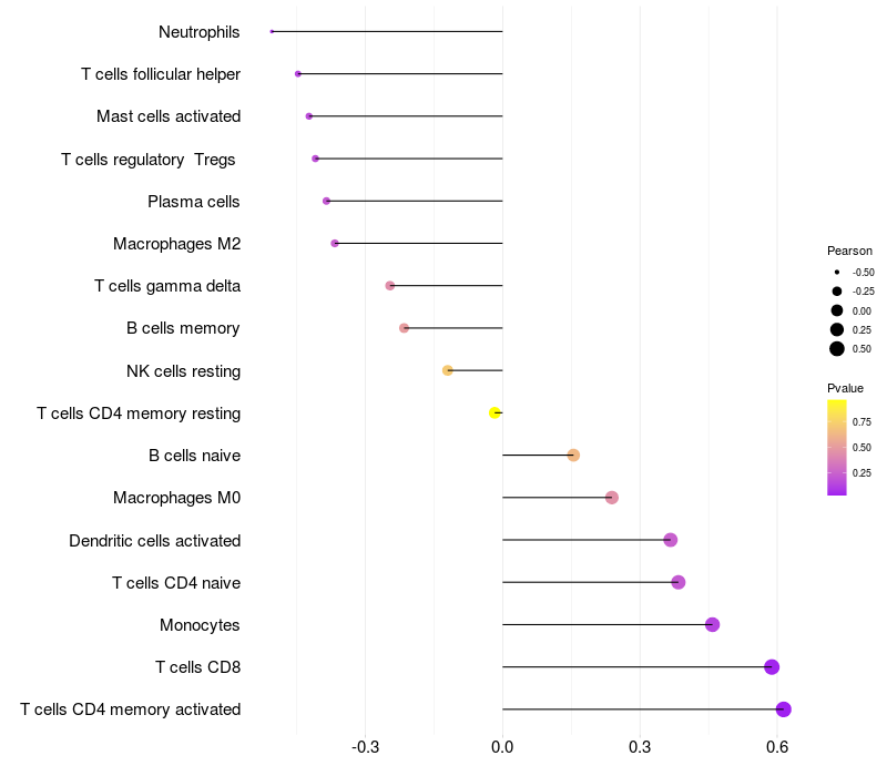 Lollipop of PLXNA4 expression and immune infiltrating cell level correlation result in EBV+ samples