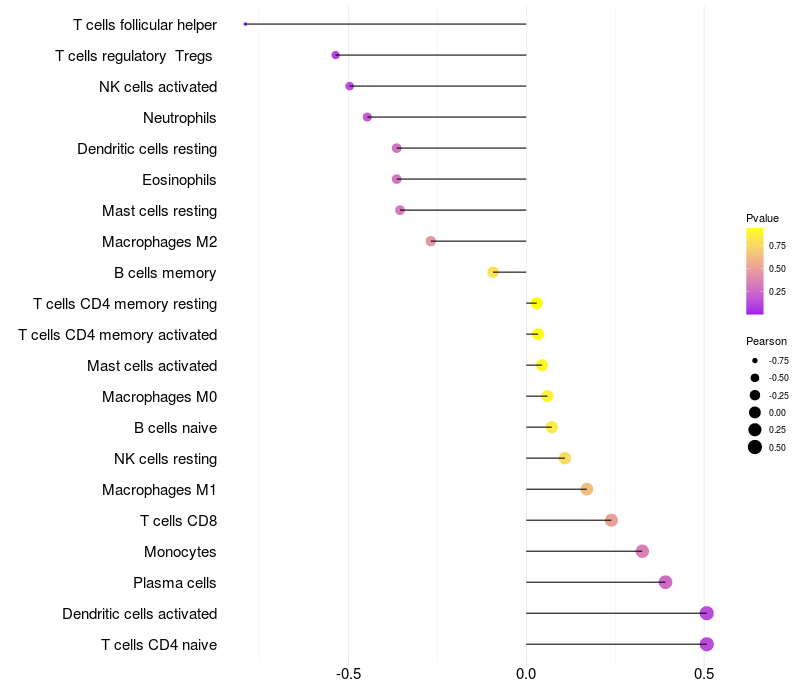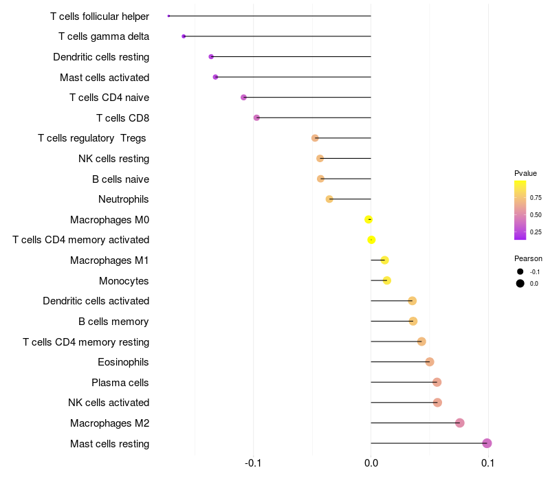 Lollipop of PLXNB2 expression and immune infiltrating cell level correlation result in HBV+ Liver cirrhosis samples