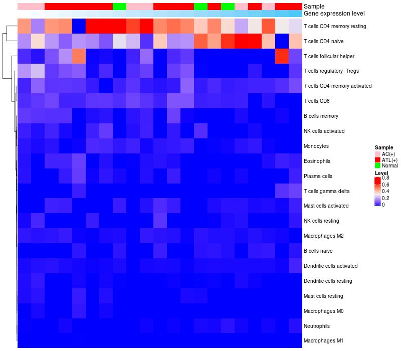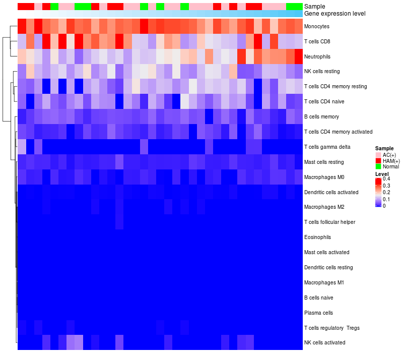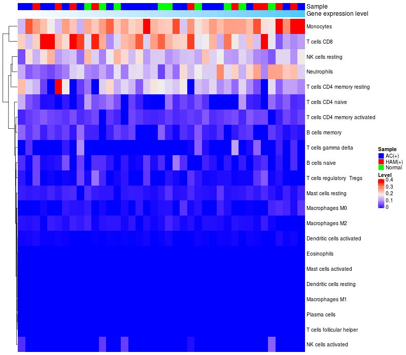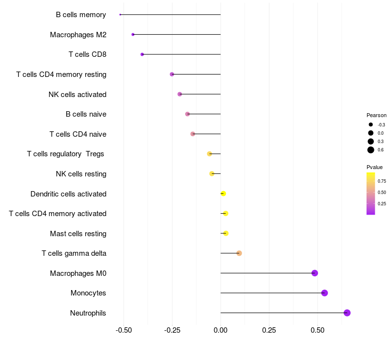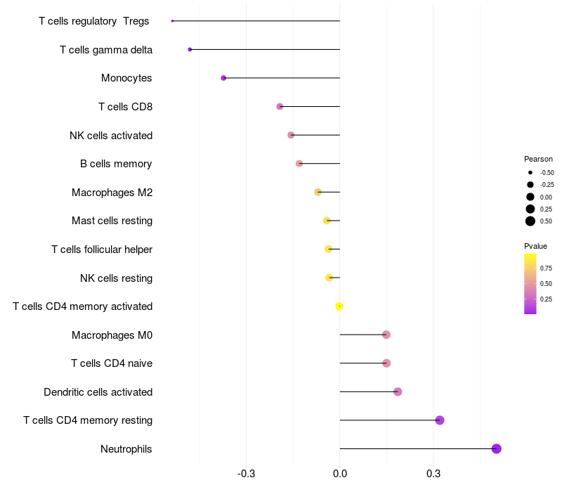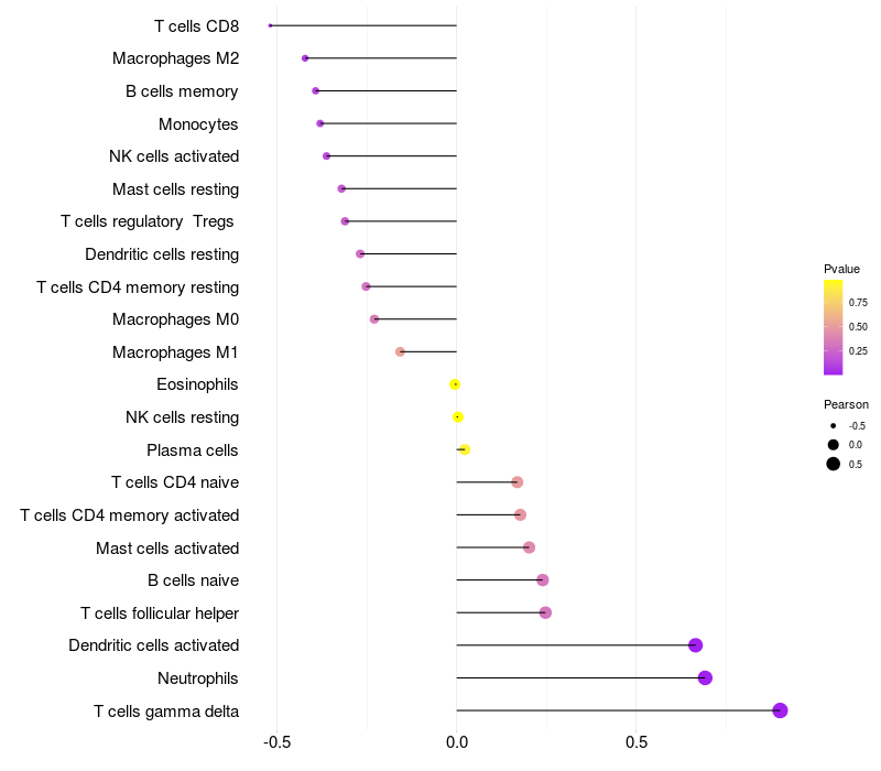 Relationship between gene expression and immune infiltrating cell level
