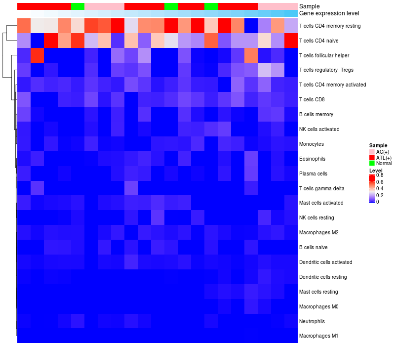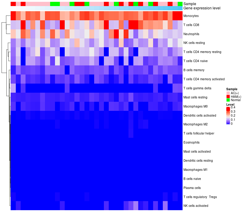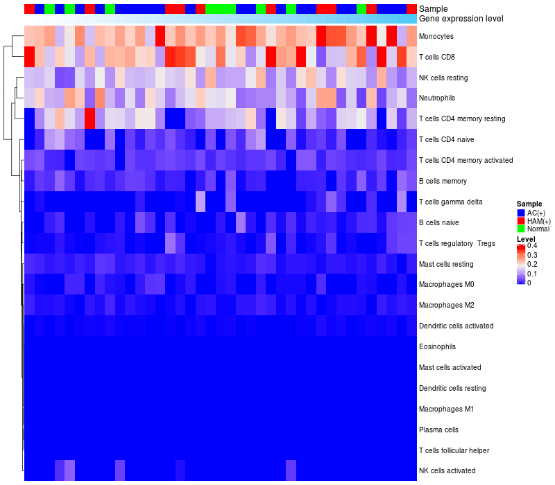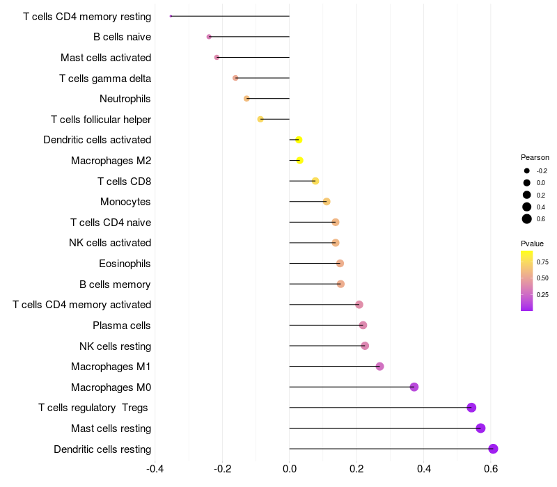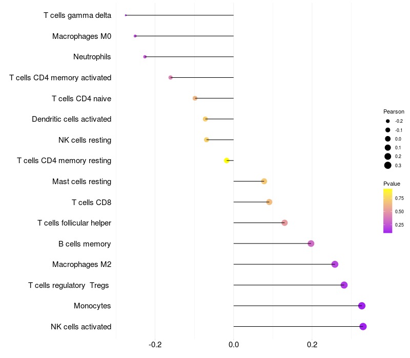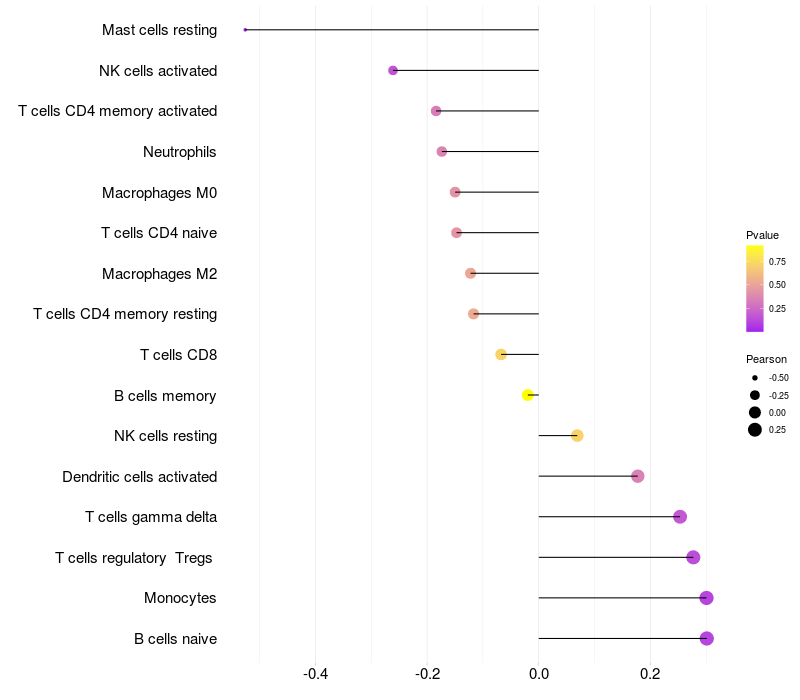 Lollipop of PMF1 expression and immune infiltrating cell level correlation result in HTLV1+ samples