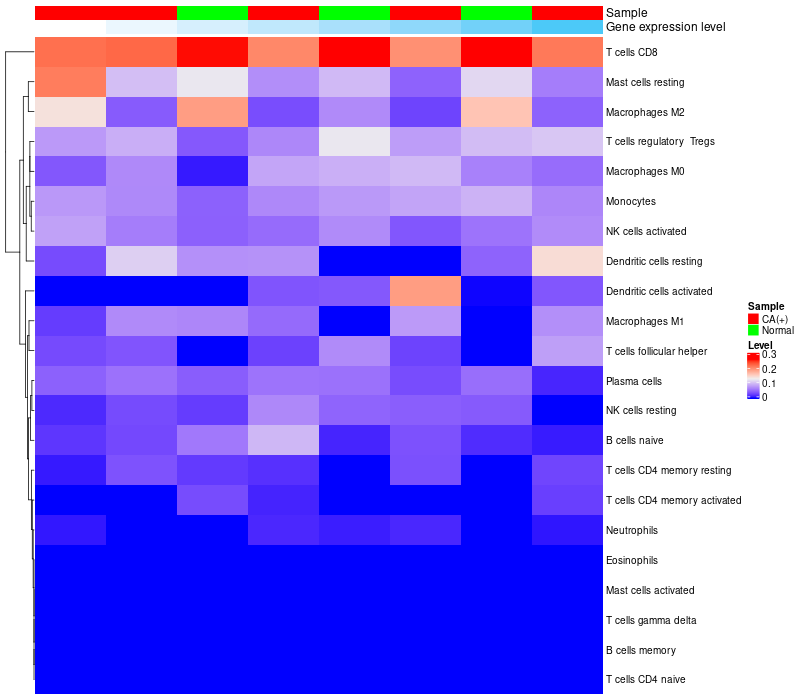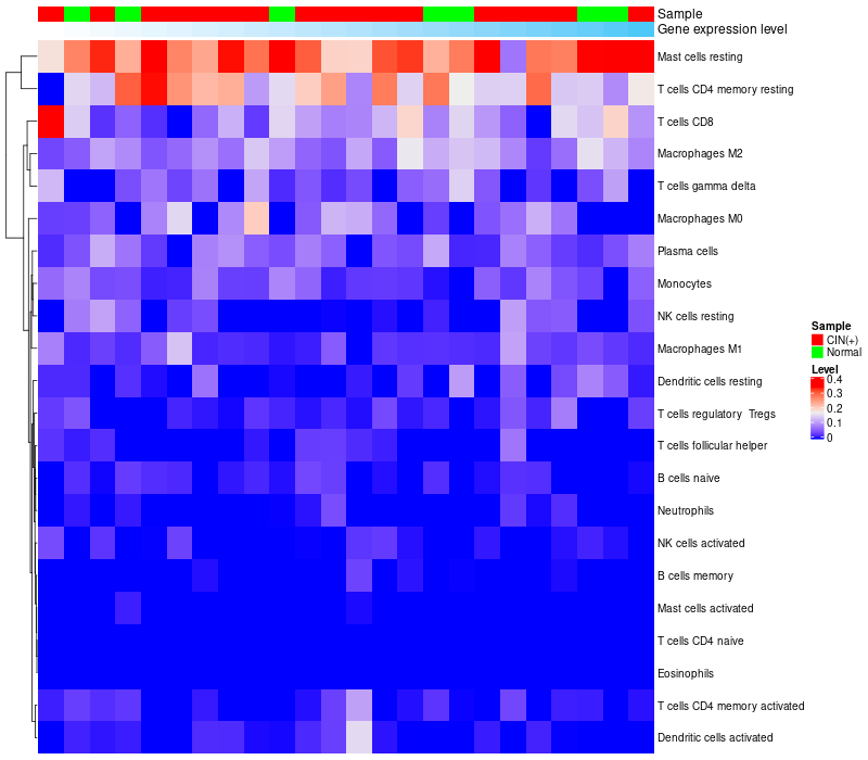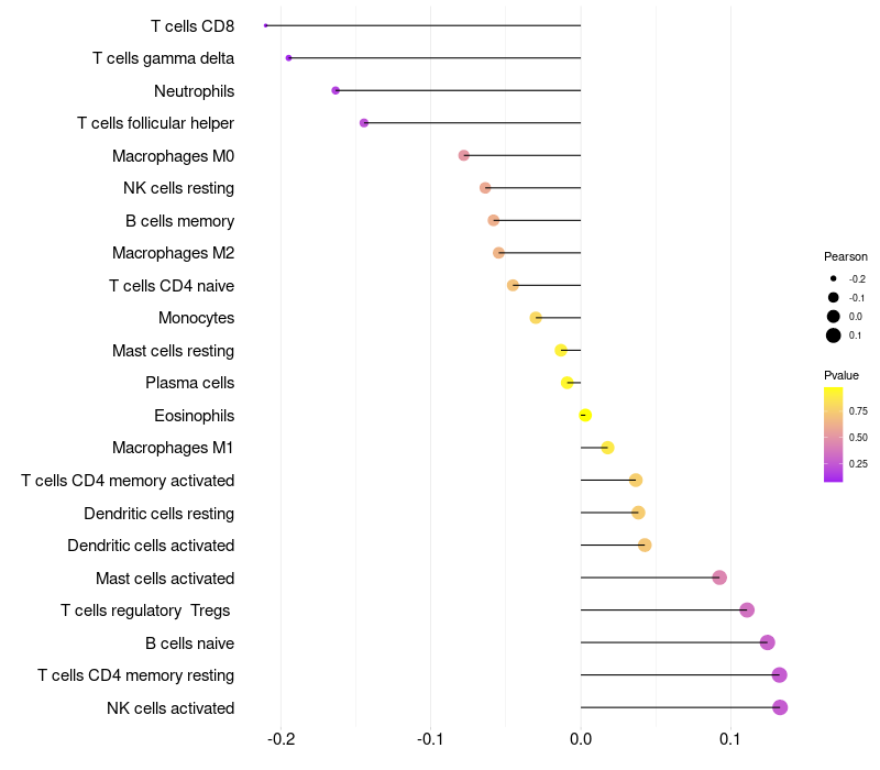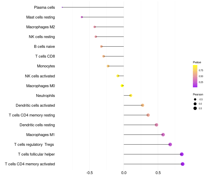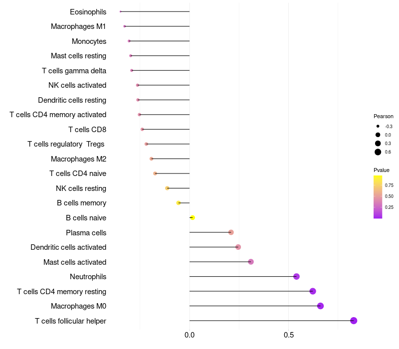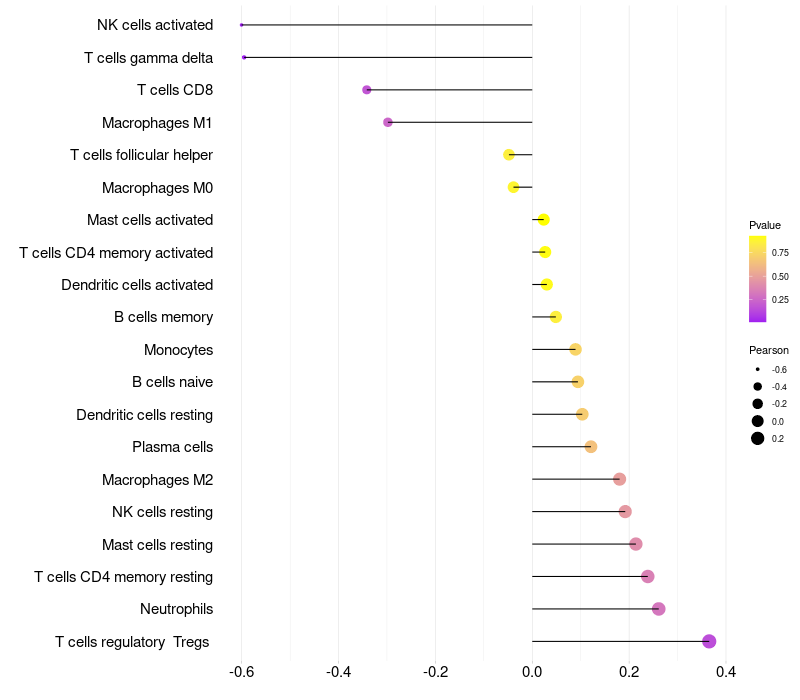 Lollipop of PNLDC1 expression and immune infiltrating cell level correlation result in HPV+ samples