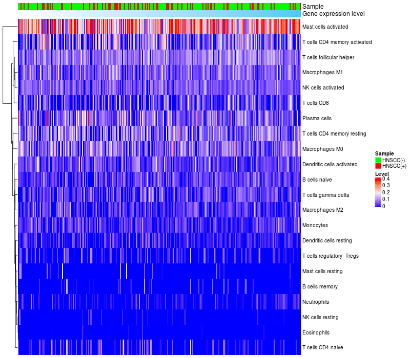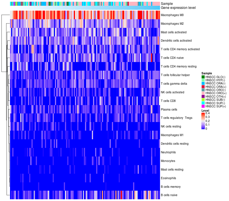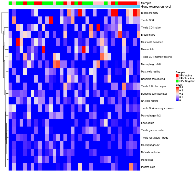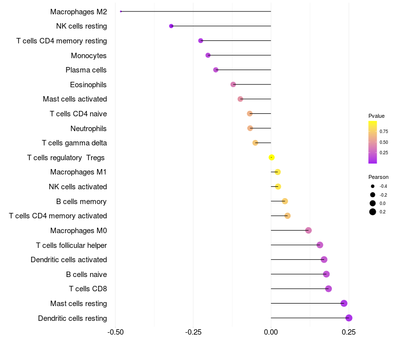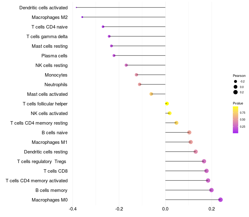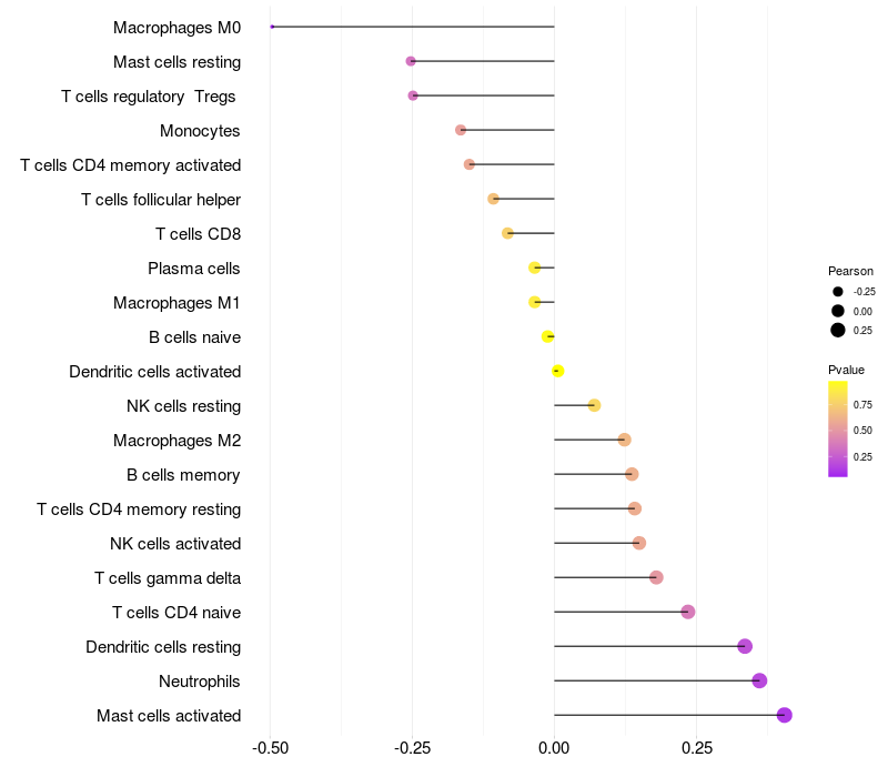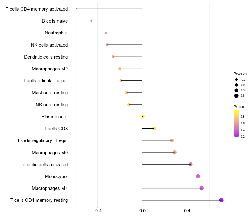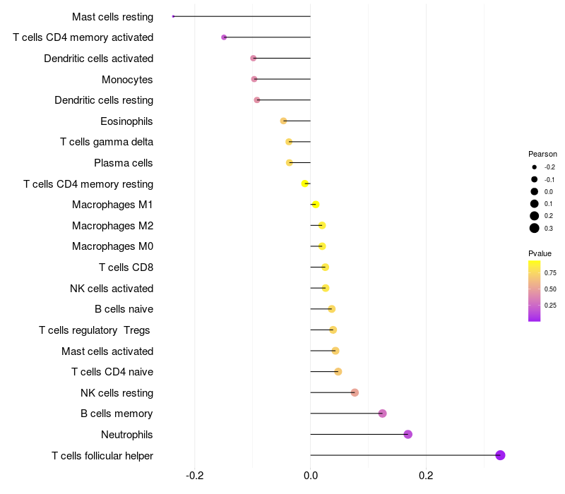 Lollipop of PNRC1 expression and immune infiltrating cell level correlation result in HPV+ samples
