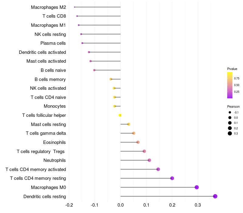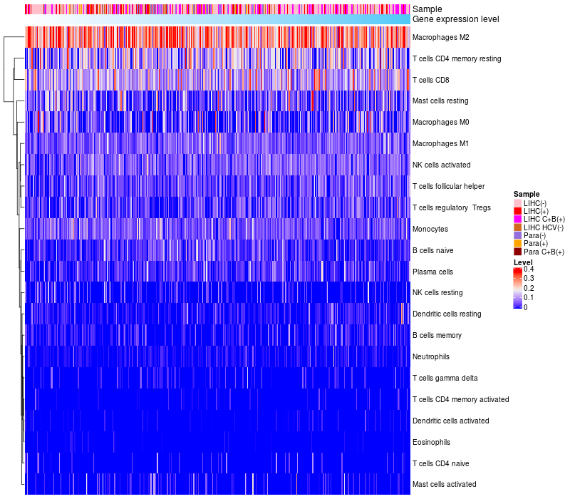 Relationship between gene expression and immune infiltrating cell level