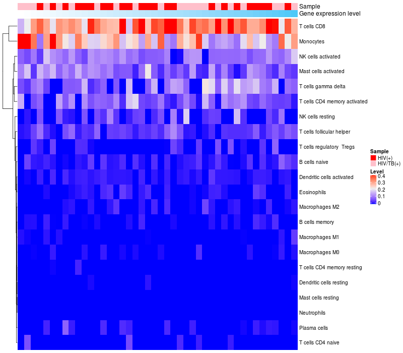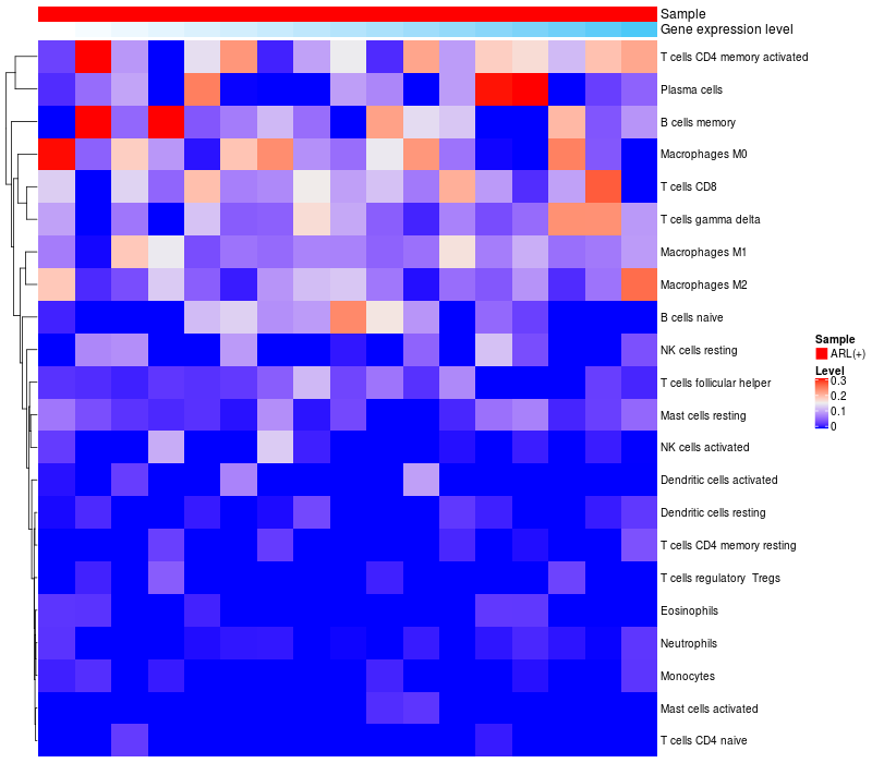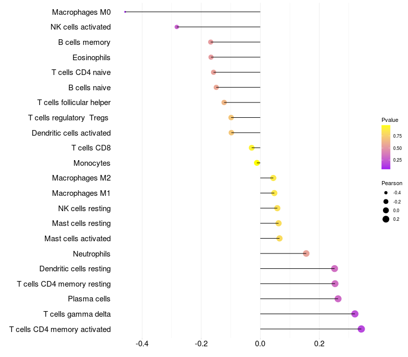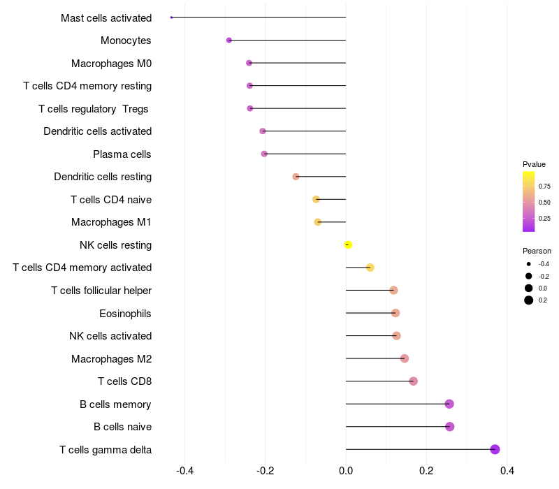 Relationship between gene expression and immune infiltrating cell level
