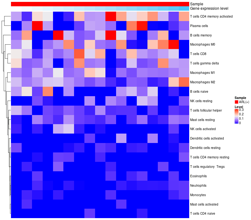 Relationship between gene expression and immune infiltrating cell level