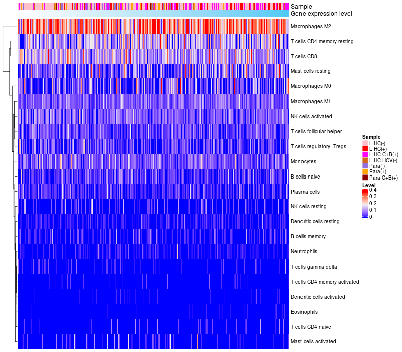 Liver hepatocellular carcinoma HCV (HBV+)(86), Liver hepatocellular carcinoma HCV (HBV-)(19), Liver hepatocellular carcinoma (HBV+)(209), Liver hepatocellular carcinoma (HBV+)(60), Paracancerous HCV (HBV+)(4), Paracancerous (HBV-)(28), Paracancerous (HBV+)(18) |