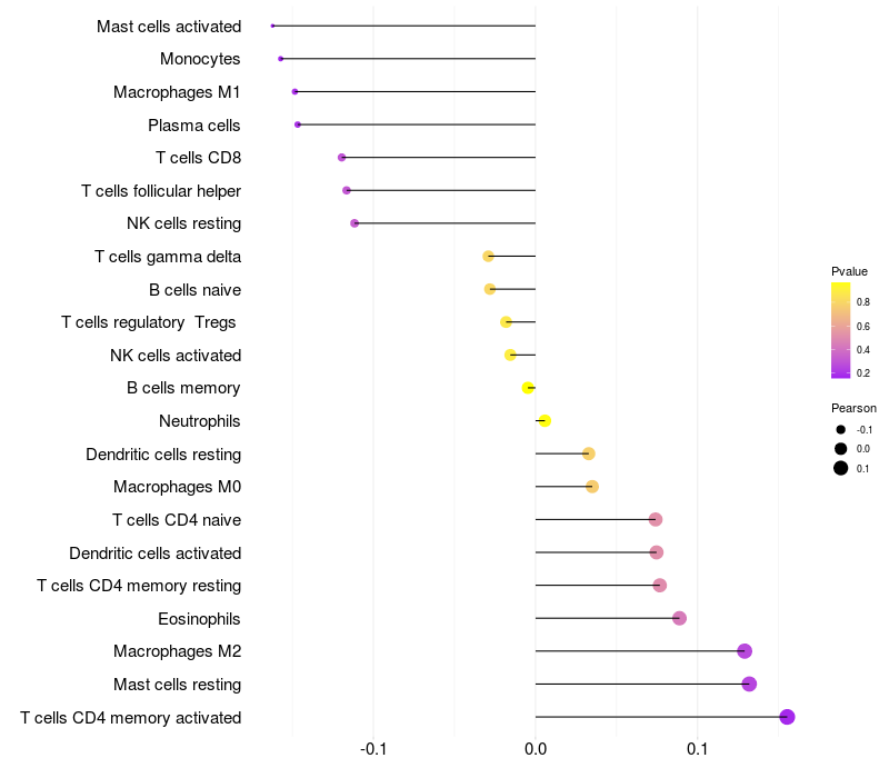 Lollipop of POLR3A expression and immune infiltrating cell level correlation result in HBV+ samples