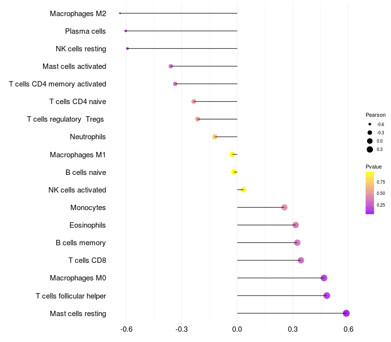 Lollipop of POLR3E expression and immune infiltrating cell level correlation result in HBV+ Liver cirrhosis samples