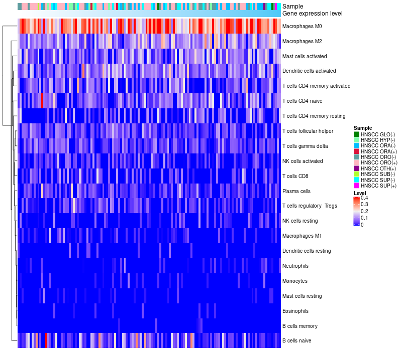 Head and Neck squamous cell carcinoma(HPV-)(483),Head and Neck squamous cell carcinoma(HPV+)(39),Paracancerous(HPV-)(44) |