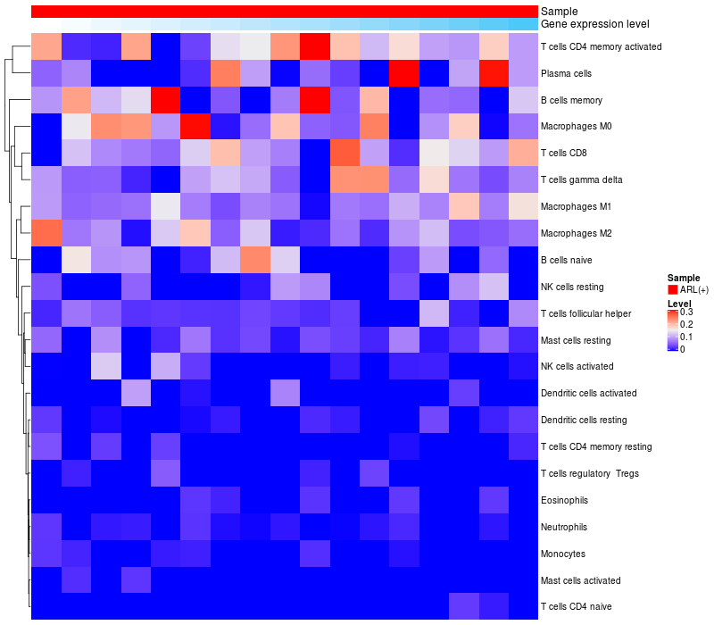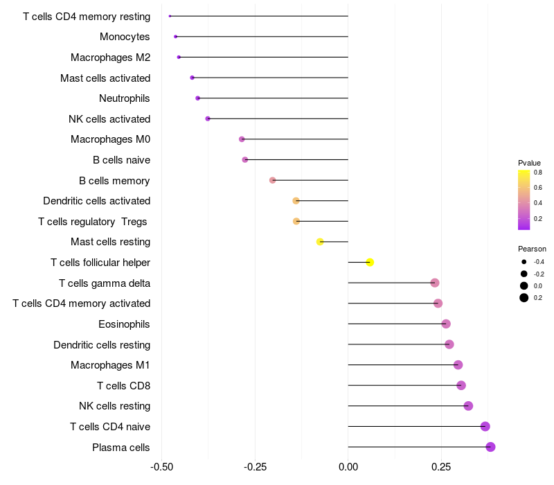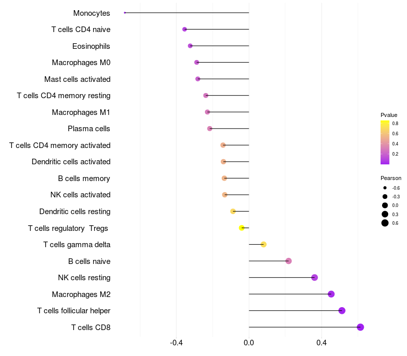 Relationship between gene expression and immune infiltrating cell level