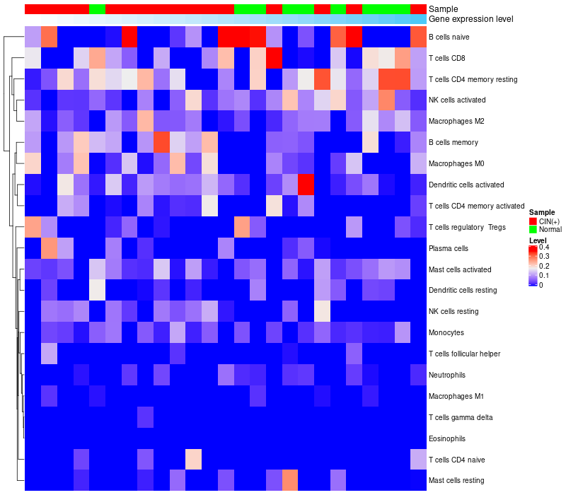 Normal (10), Cervical intraepithelial neoplasia (HPV+)(15) |
