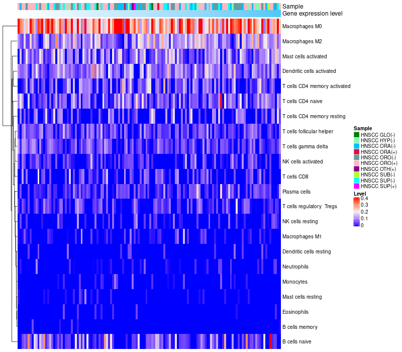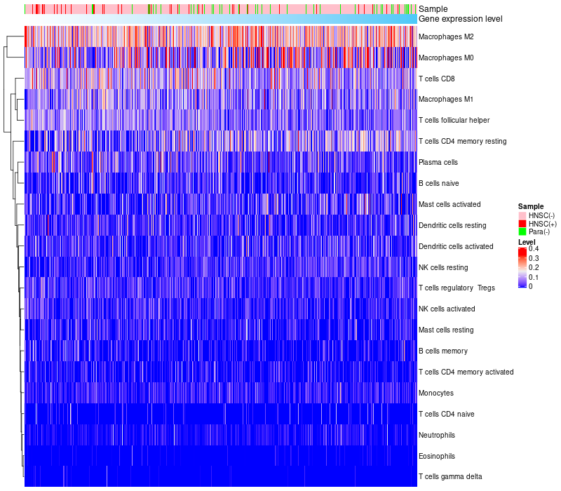Head and Neck squamous cell carcinoma(HPV-)(483),Head and Neck squamous cell carcinoma(HPV+)(39),Paracancerous(HPV-)(44) |