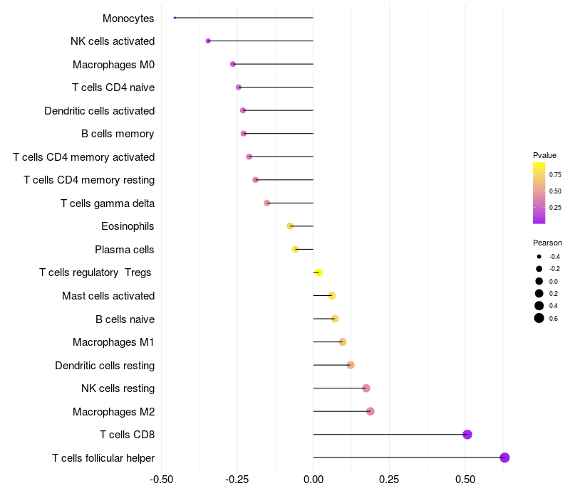 Relationship between gene expression and immune infiltrating cell level