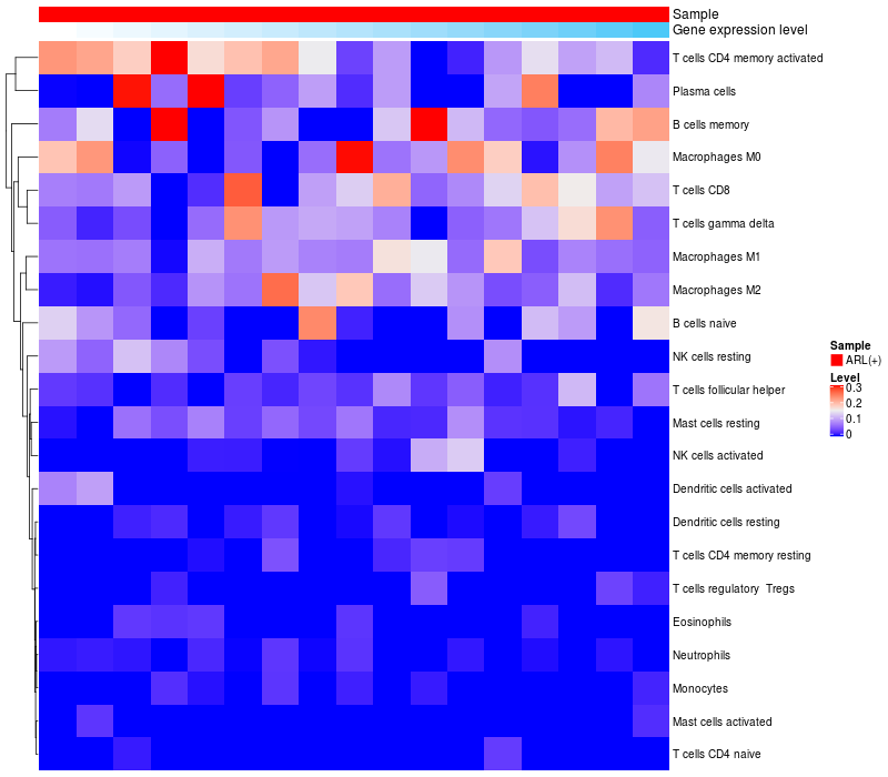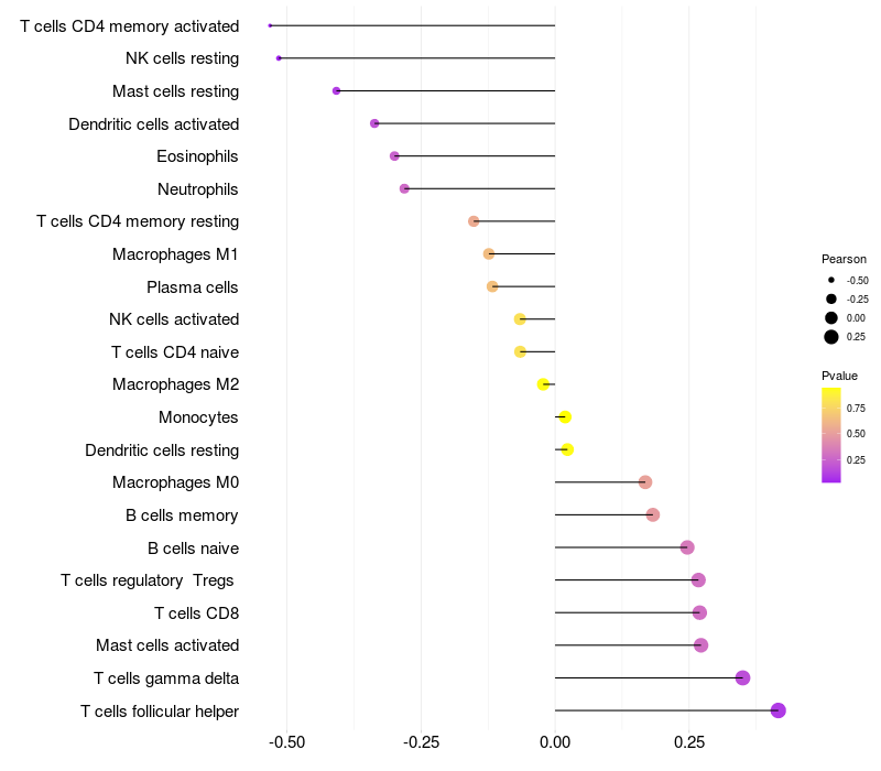 Relationship between gene expression and immune infiltrating cell level