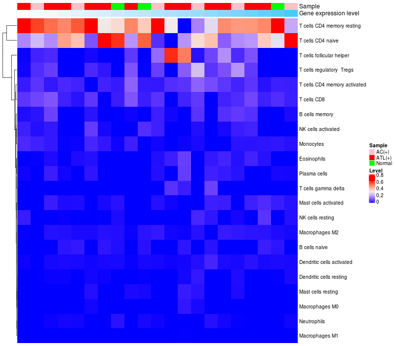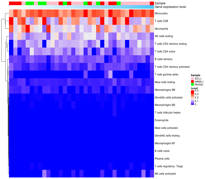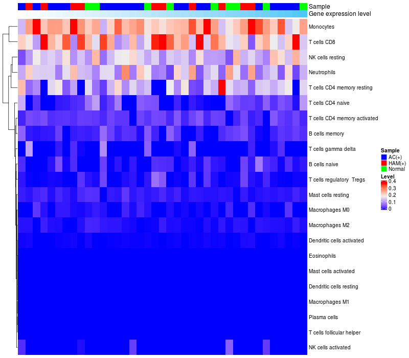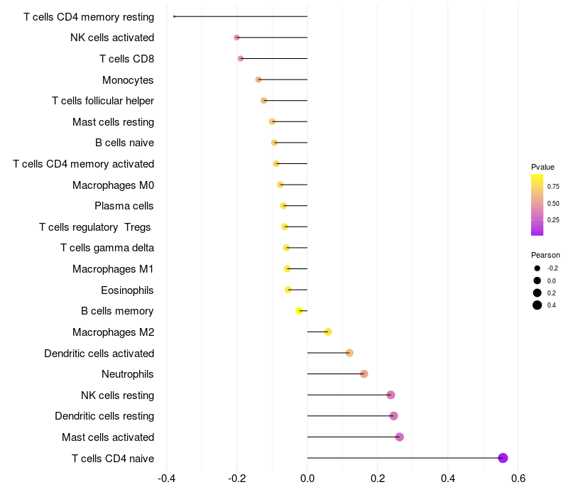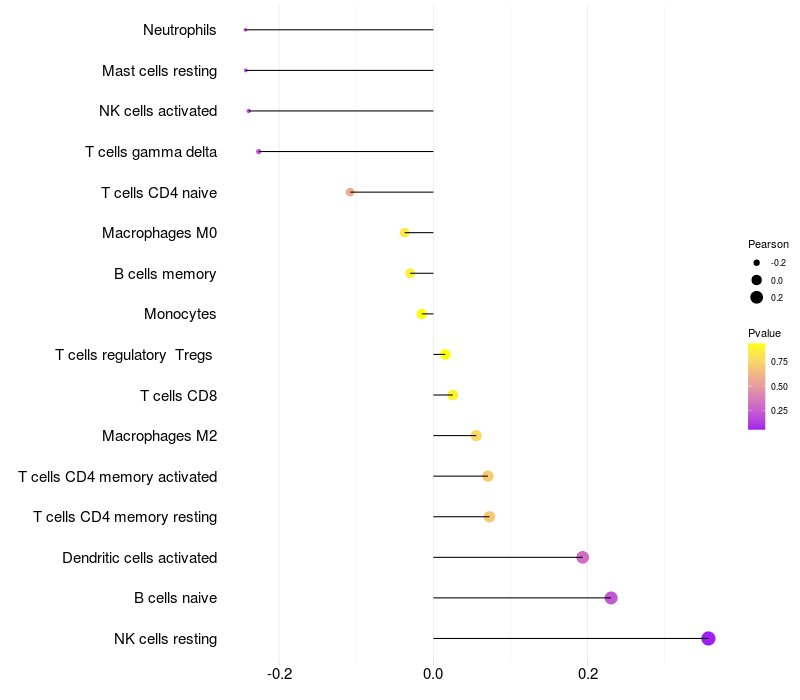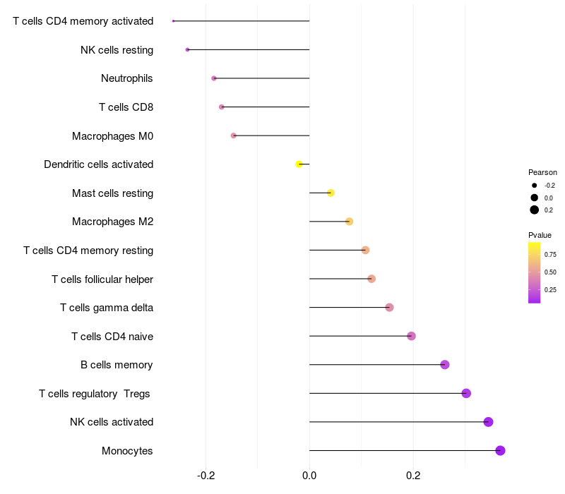 Lollipop of PPFIBP2 expression and immune infiltrating cell level correlation result in HTLV1+ samples