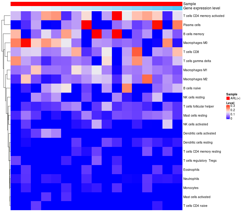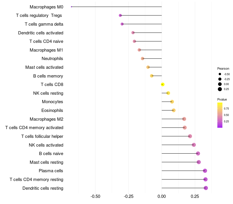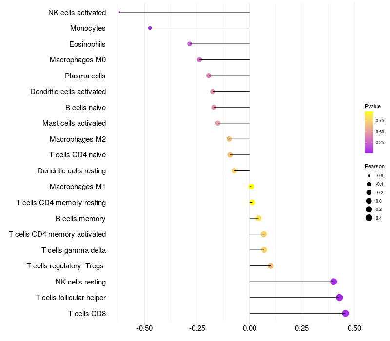 Relationship between gene expression and immune infiltrating cell level
