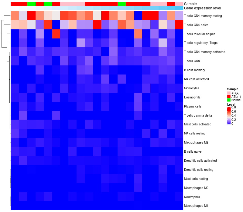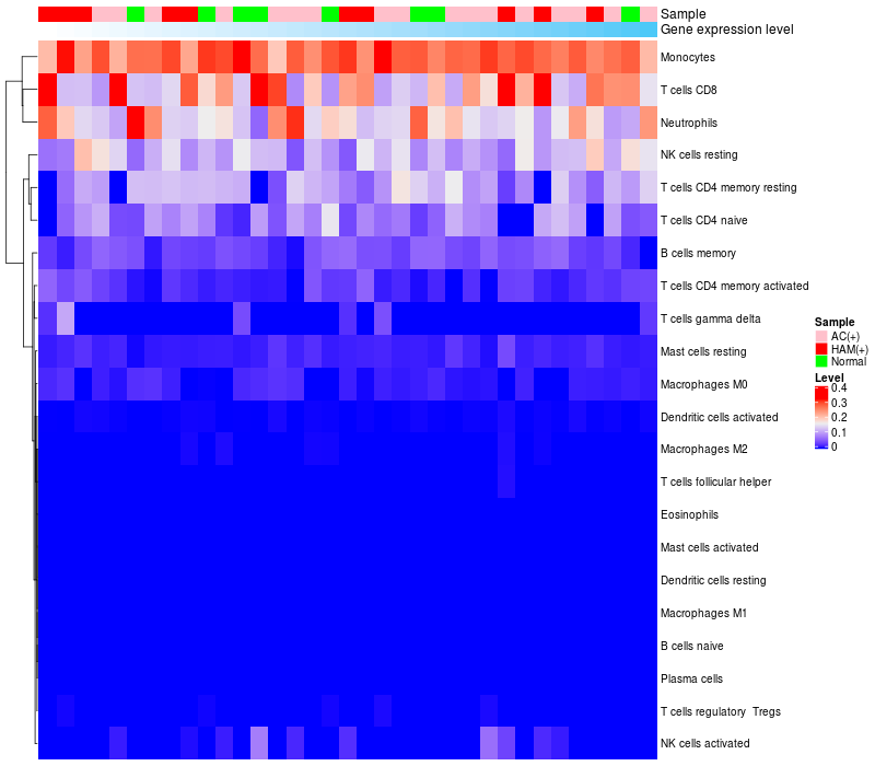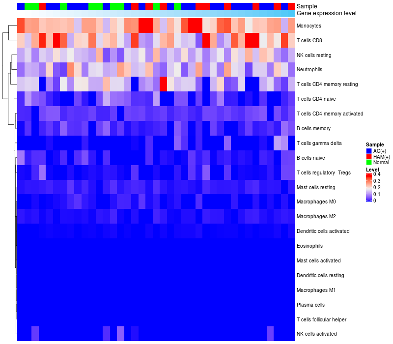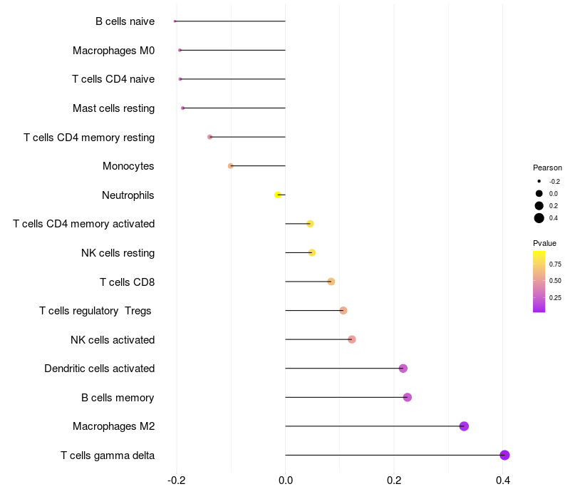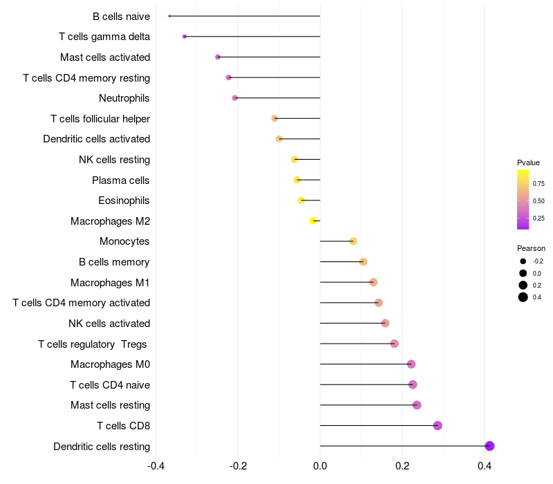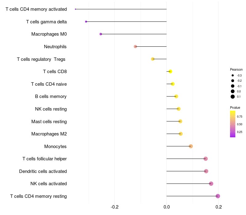 Lollipop of PPL expression and immune infiltrating cell level correlation result in HTLV1+ samples