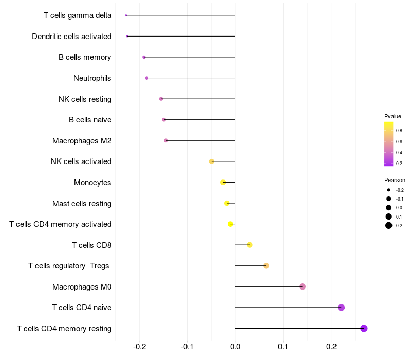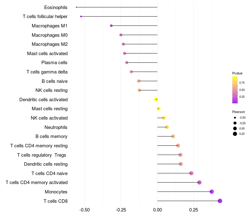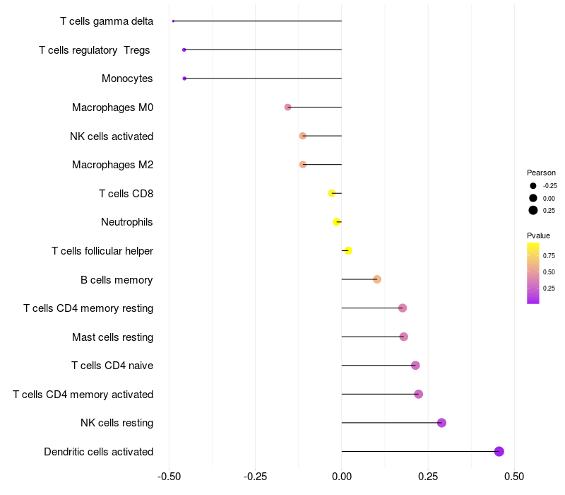 Lollipop of PPM1K expression and immune infiltrating cell level correlation result in HTLV1+ samples