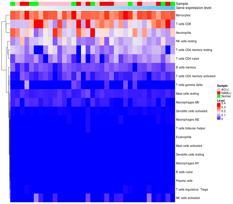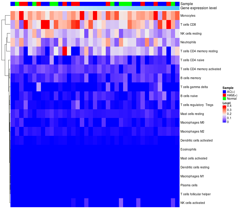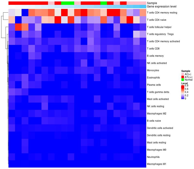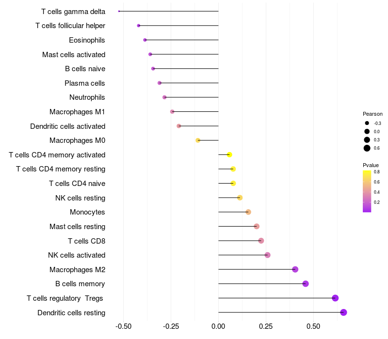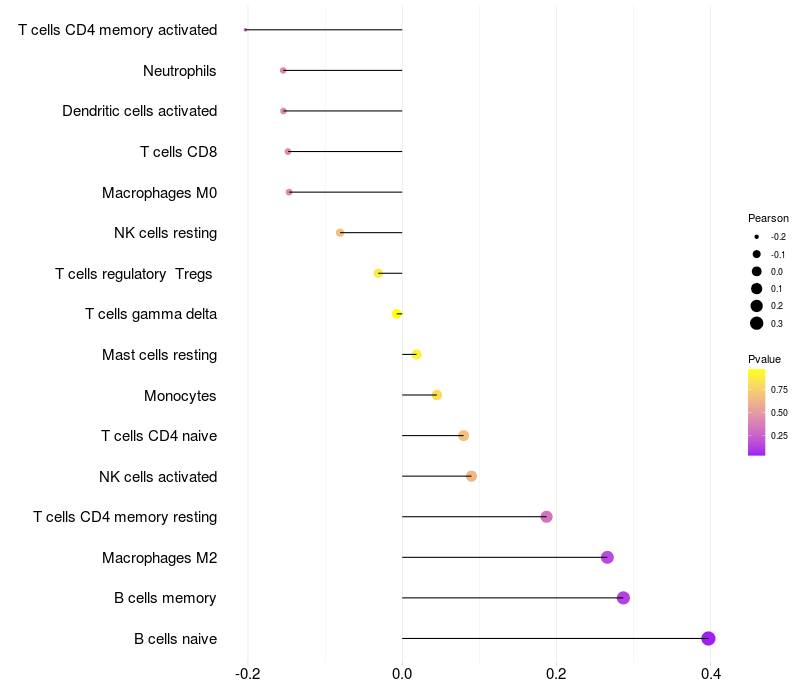 Lollipop of PPP1R13L expression and immune infiltrating cell level correlation result in HTLV1+ samples