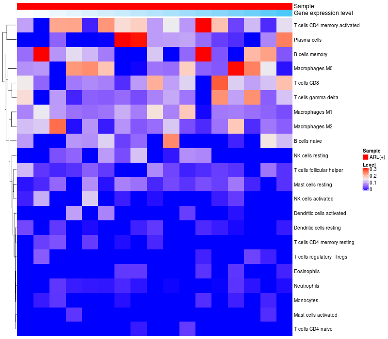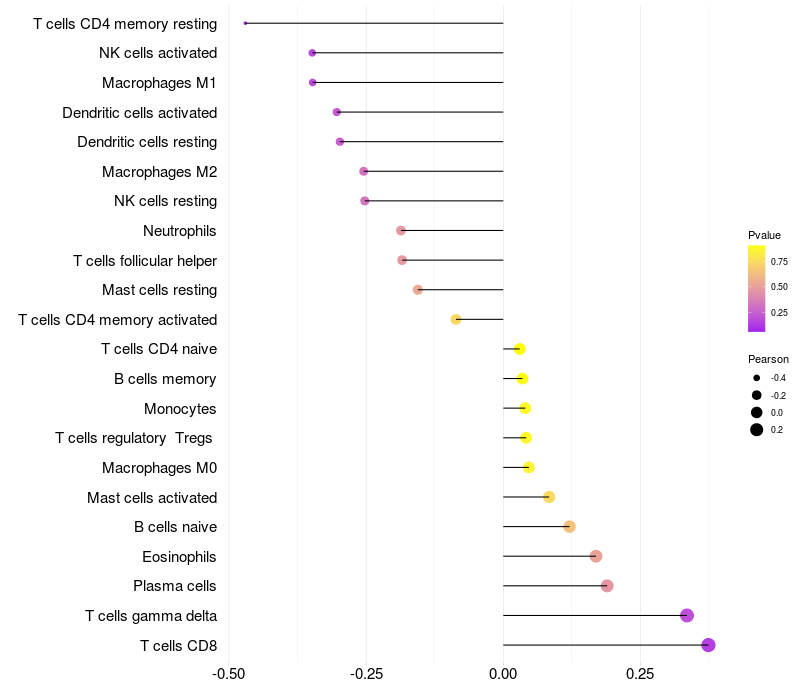 Relationship between gene expression and immune infiltrating cell level