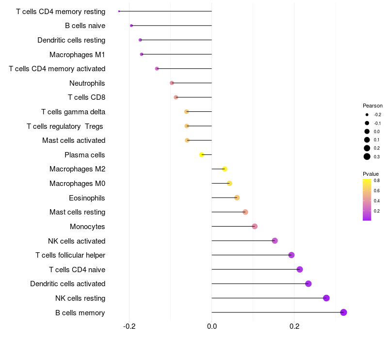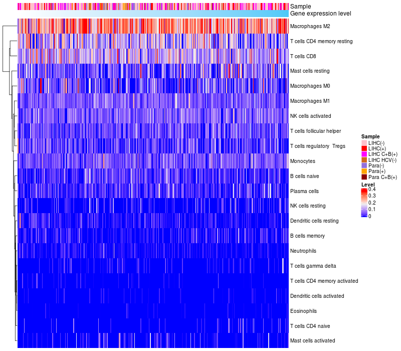 Relationship between gene expression and immune infiltrating cell level