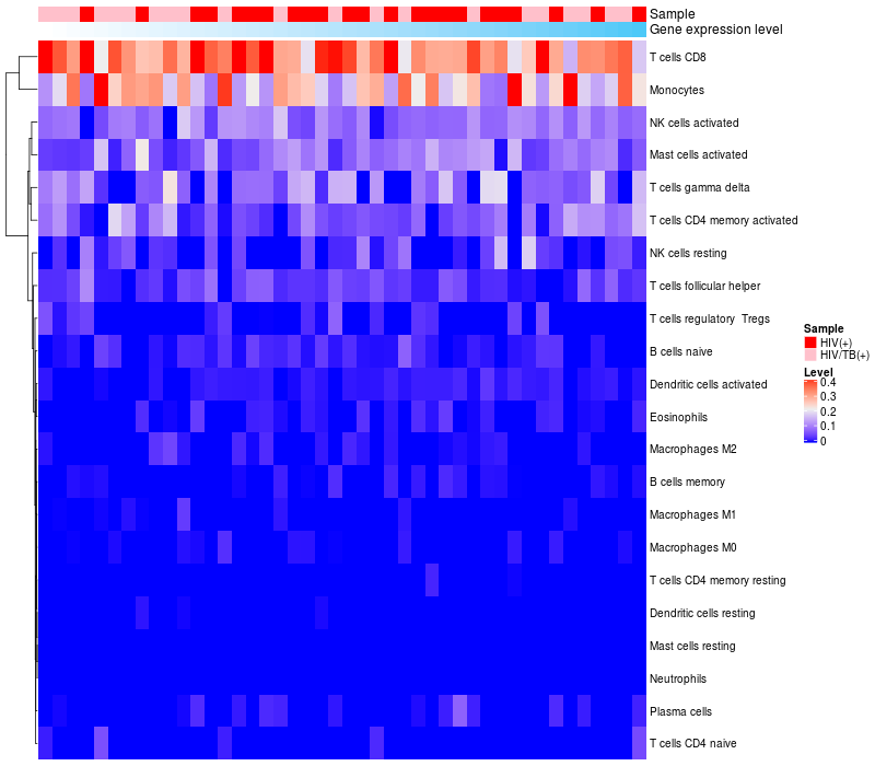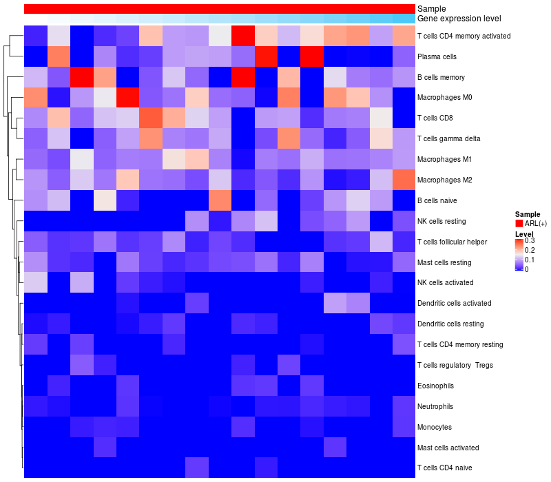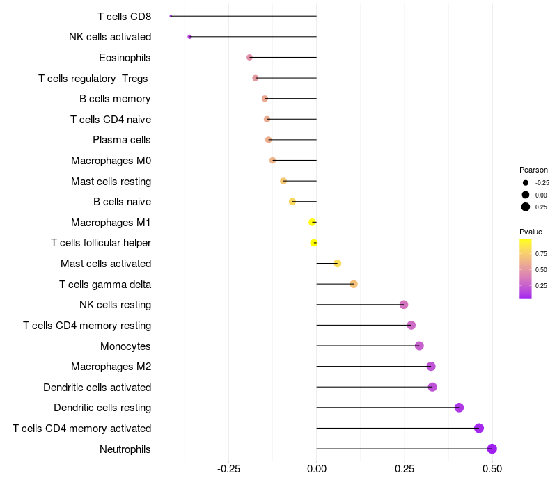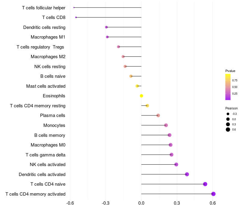 Relationship between gene expression and immune infiltrating cell level