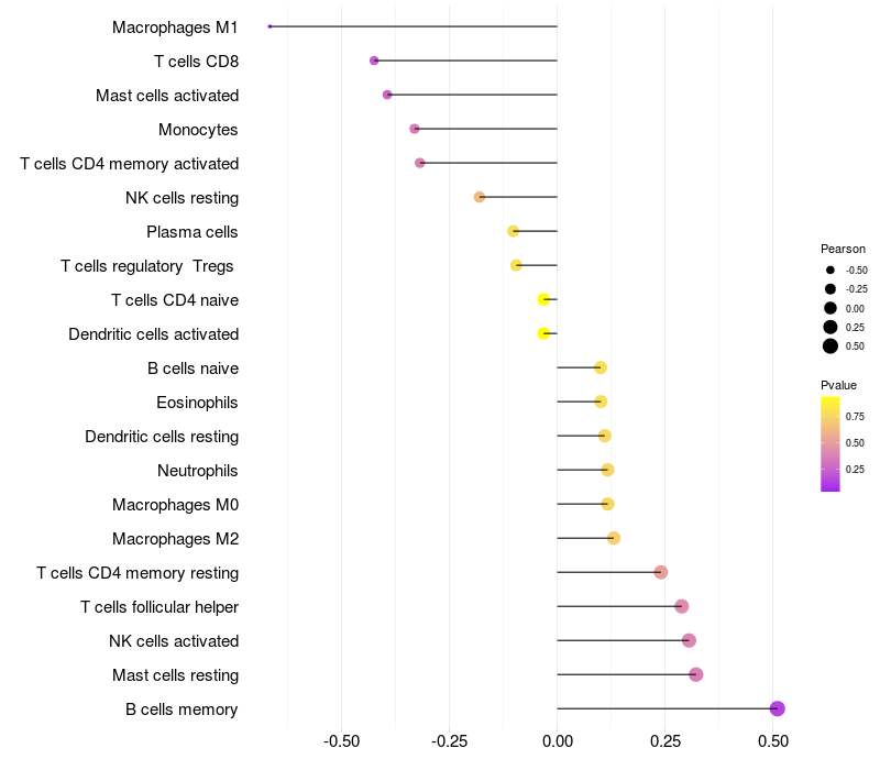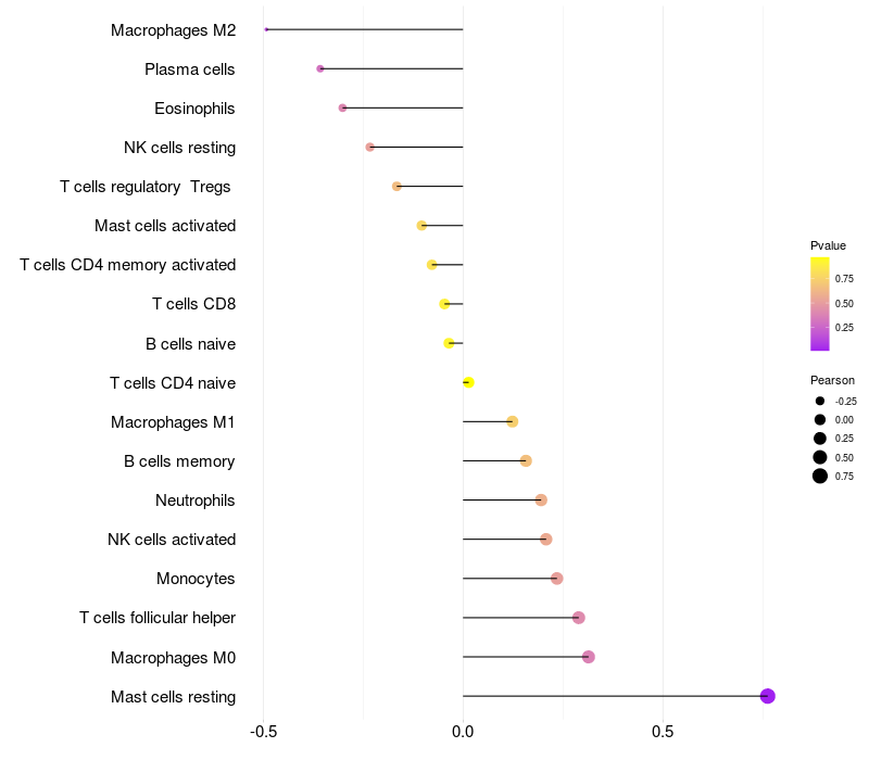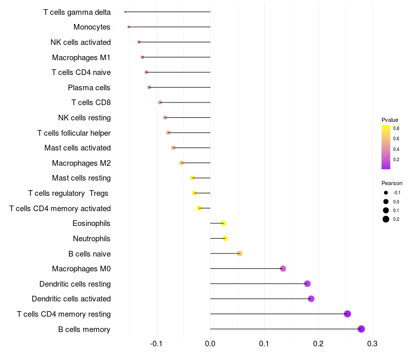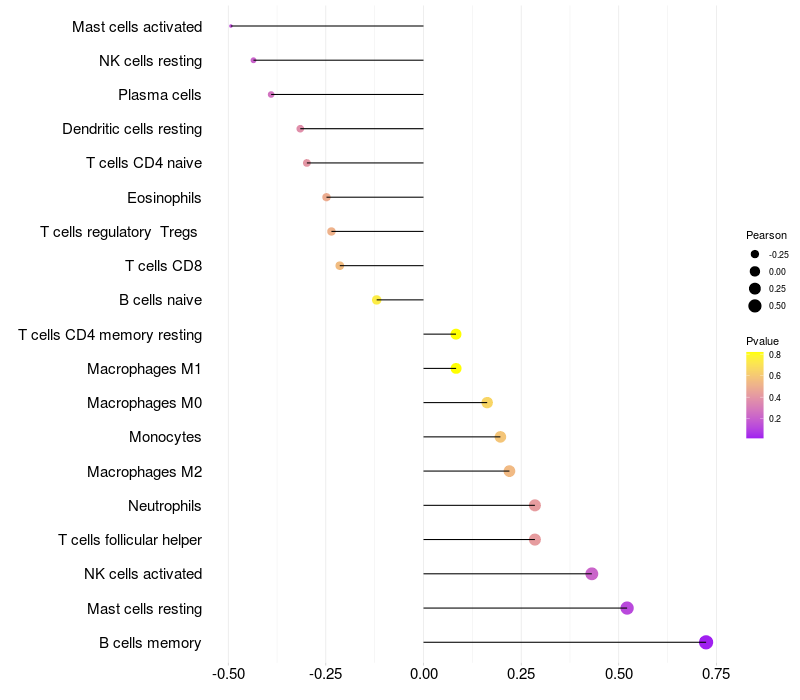 Lollipop of PPWD1 expression and immune infiltrating cell level correlation result in HBV+ Liver cirrhosis samples
