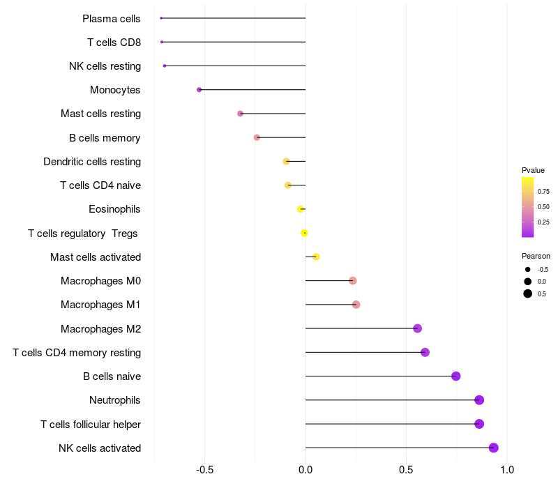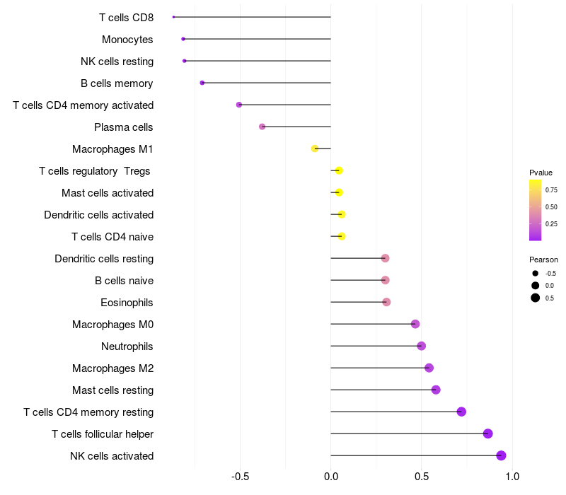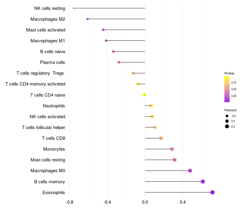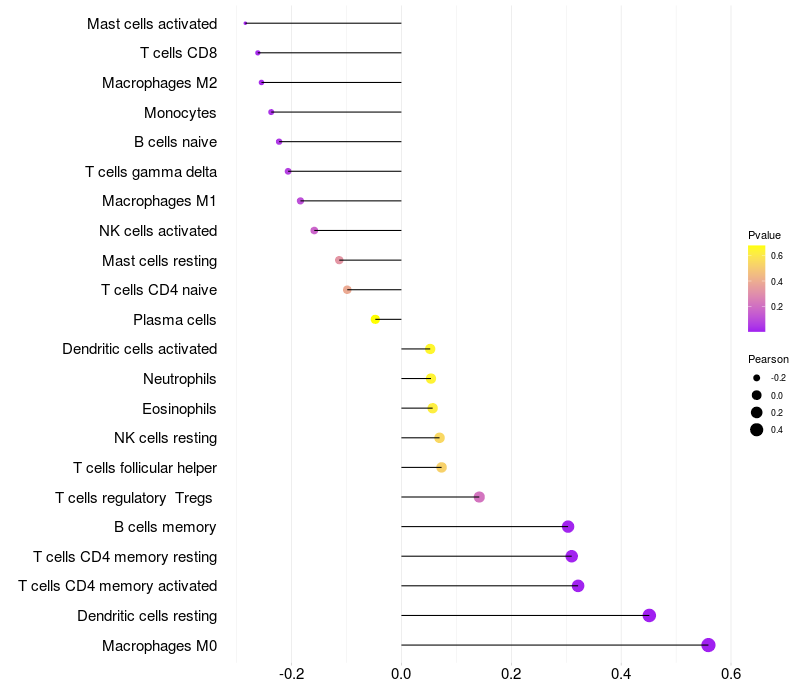 Lollipop of PRC1 expression and immune infiltrating cell level correlation result in HBV+ Liver cirrhosis samples