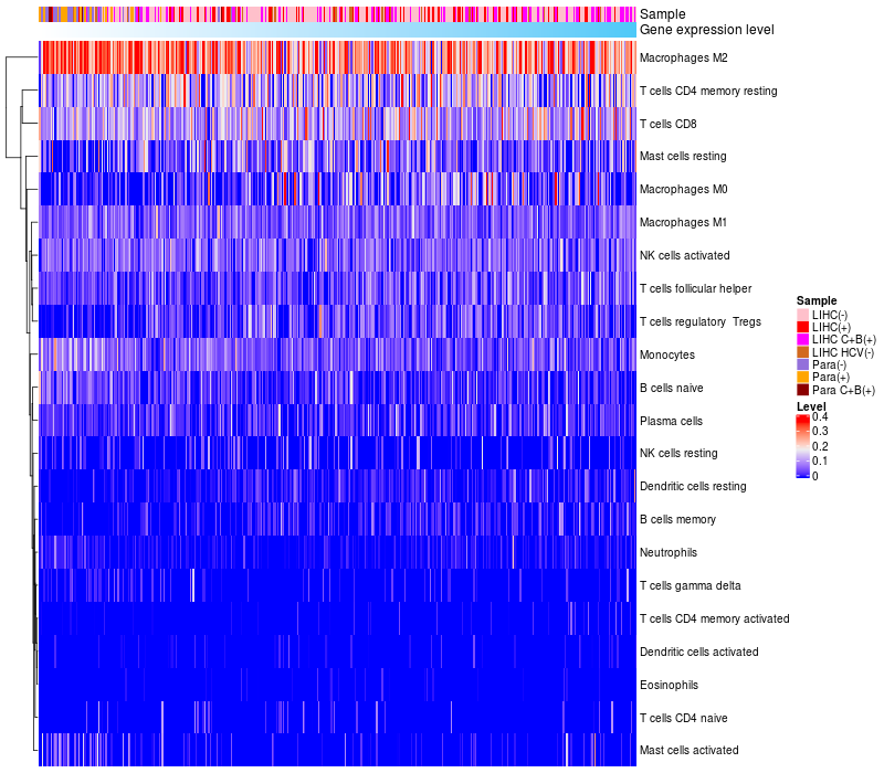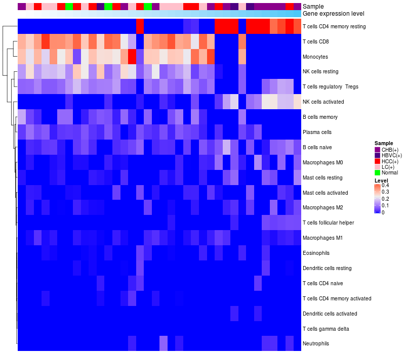 Relationship between gene expression and immune infiltrating cell level