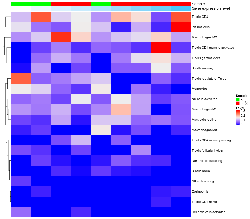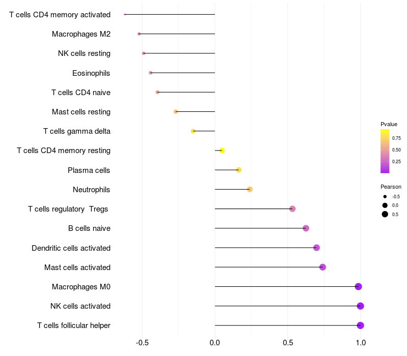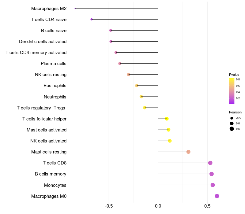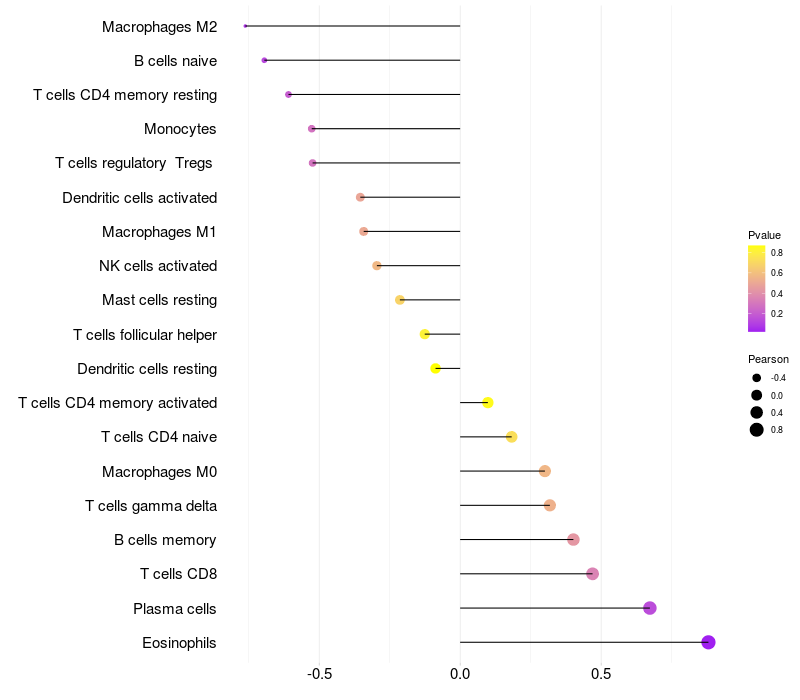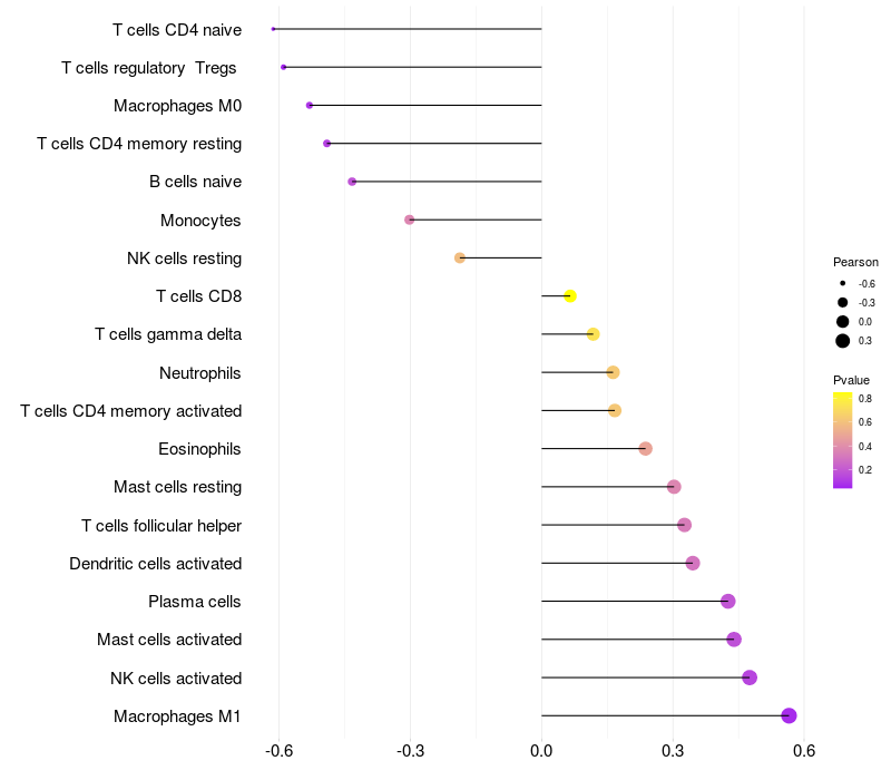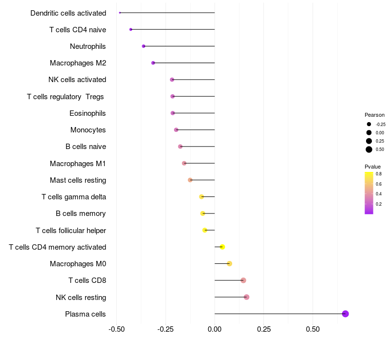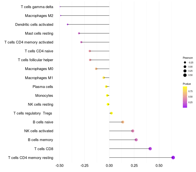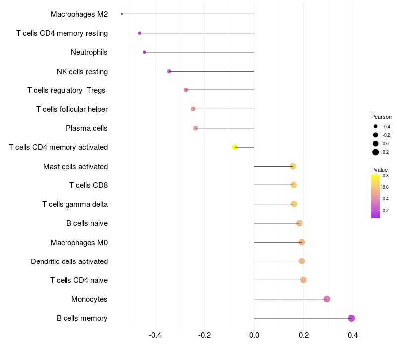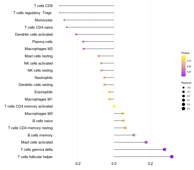 Lollipop of PRDM1 expression and immune infiltrating cell level correlation result in EBV+ samples