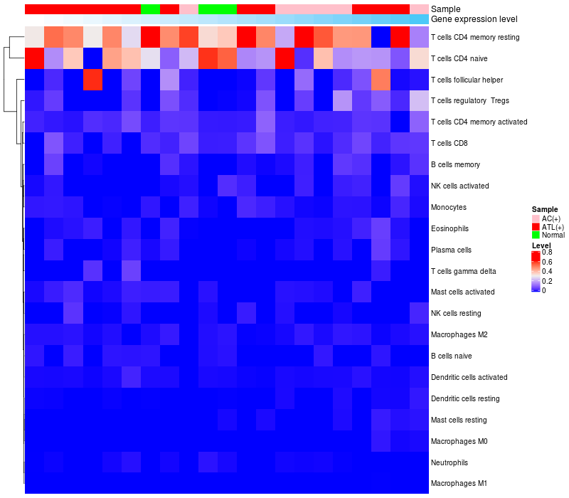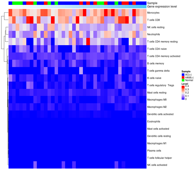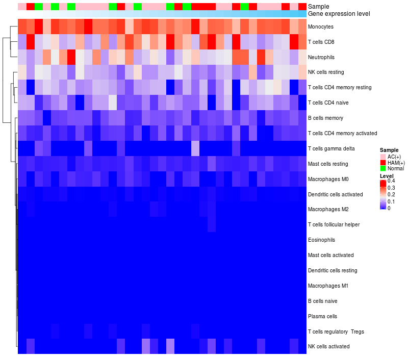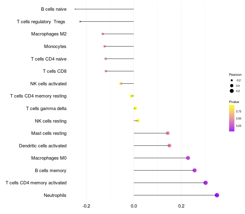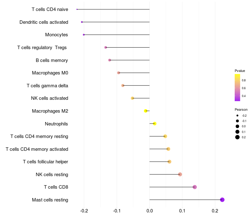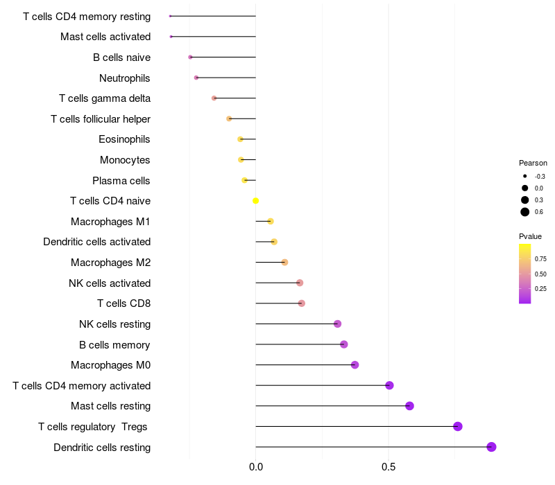 Lollipop of PRDM11 expression and immune infiltrating cell level correlation result in HTLV1+ samples