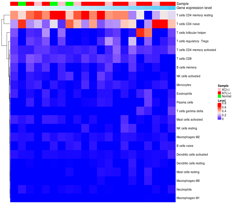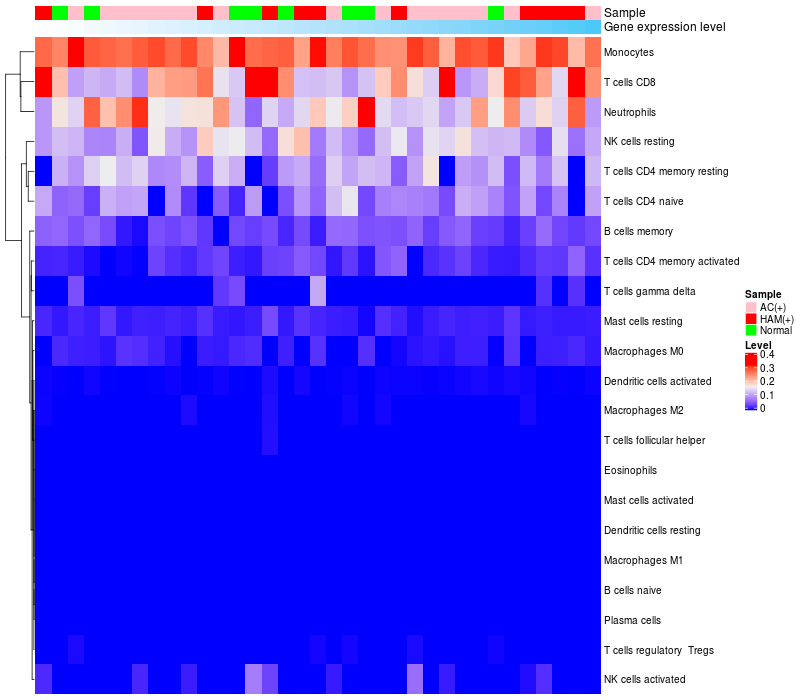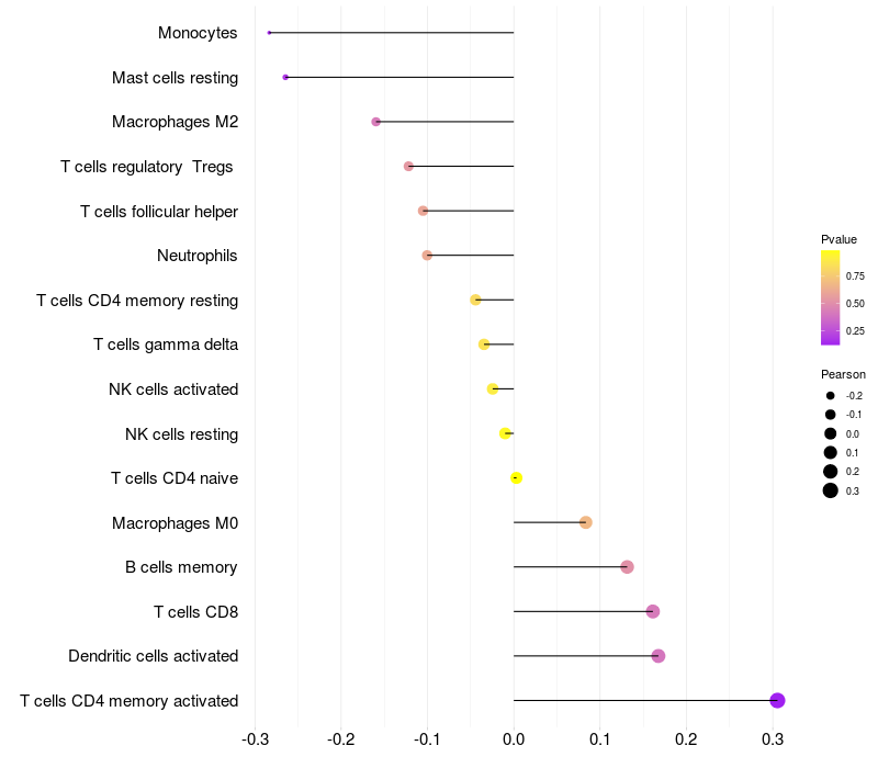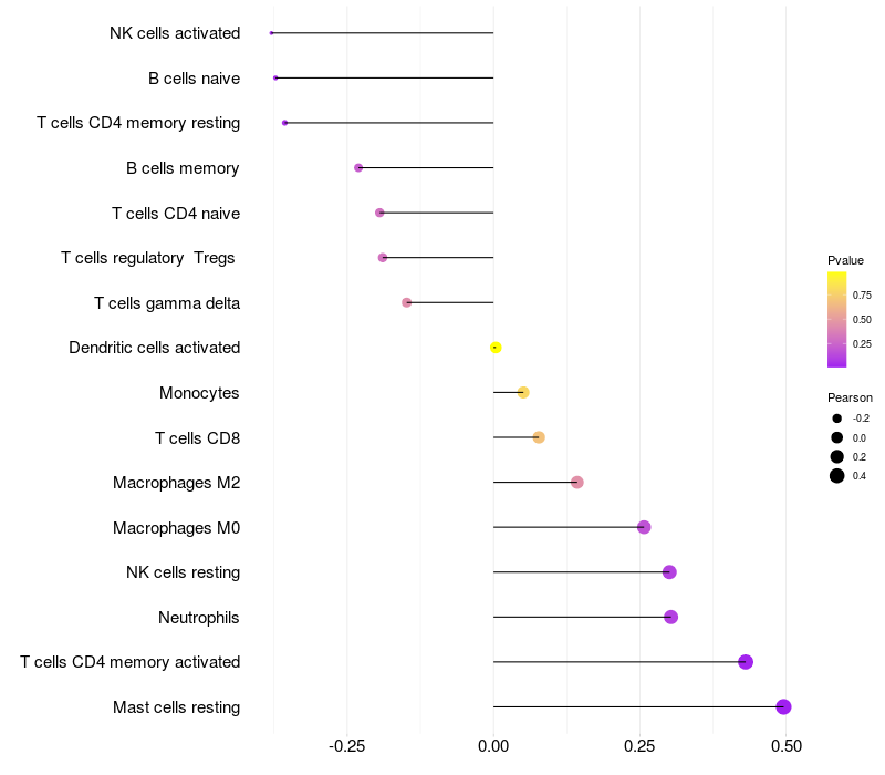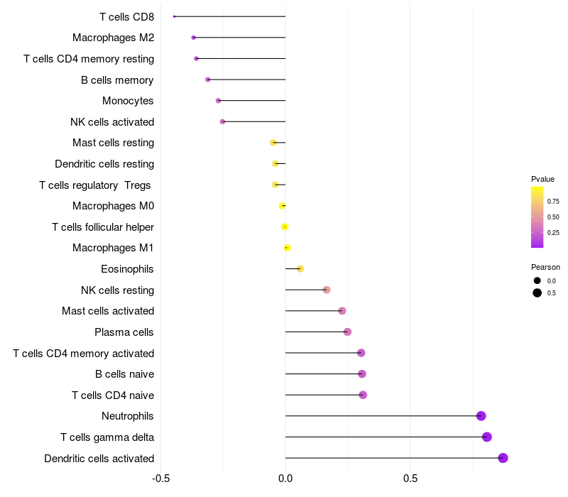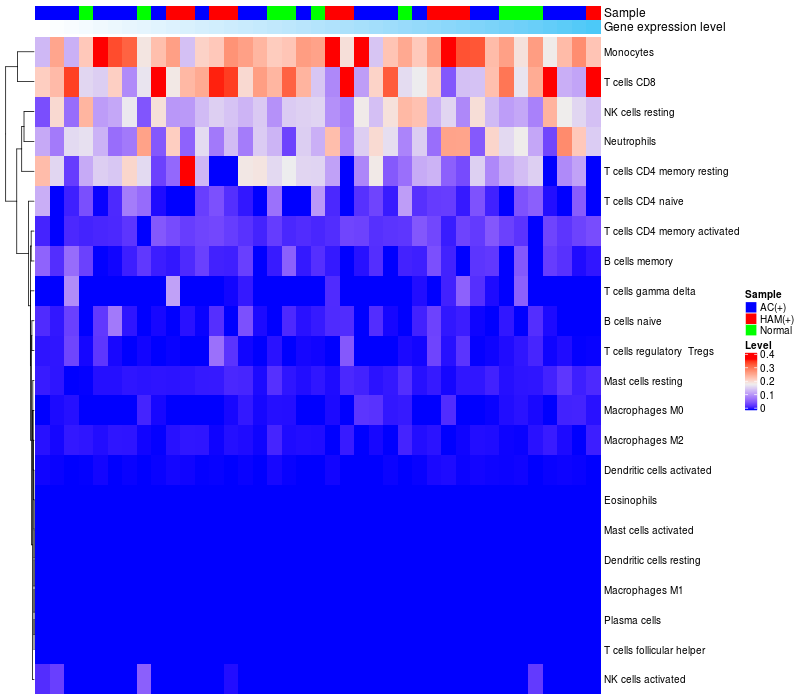 Relationship between gene expression and immune infiltrating cell level