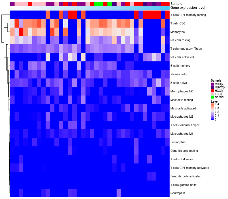 Liver hepatocellular carcinoma HCV (HBV+)(86), Liver hepatocellular carcinoma HCV (HBV-)(19), Liver hepatocellular carcinoma (HBV+)(209), Liver hepatocellular carcinoma (HBV+)(60), Paracancerous HCV (HBV+)(4), Paracancerous (HBV-)(28), Paracancerous (HBV+)(18) |