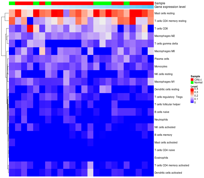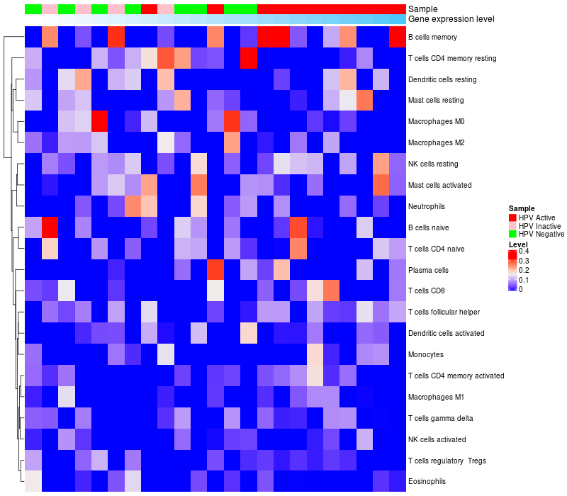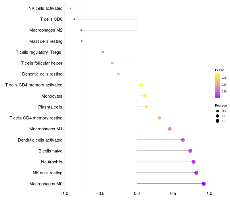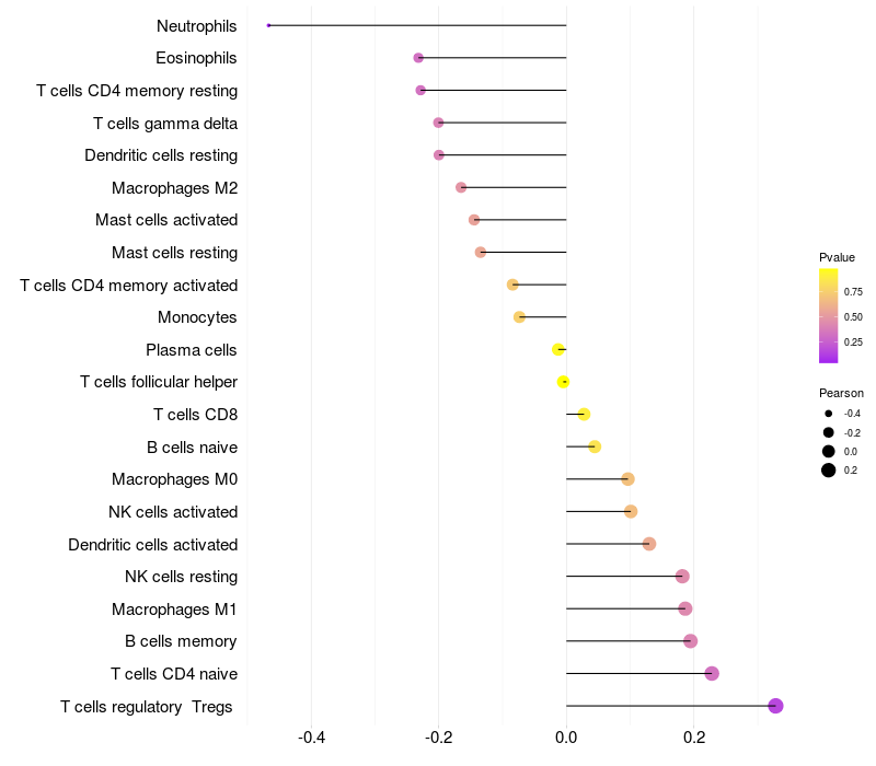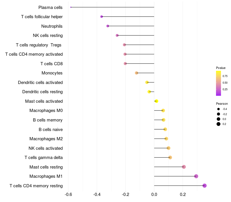 Lollipop of PRELID2 expression and immune infiltrating cell level correlation result in HPV+ samples