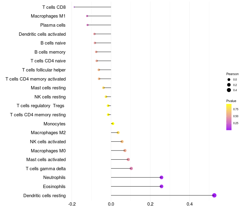 Lollipop of PREX2 expression and immune infiltrating cell level correlation result in HBV+ samples