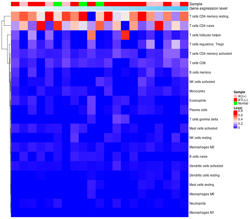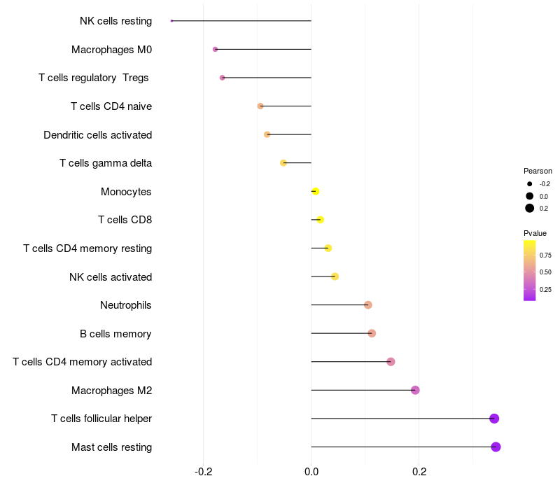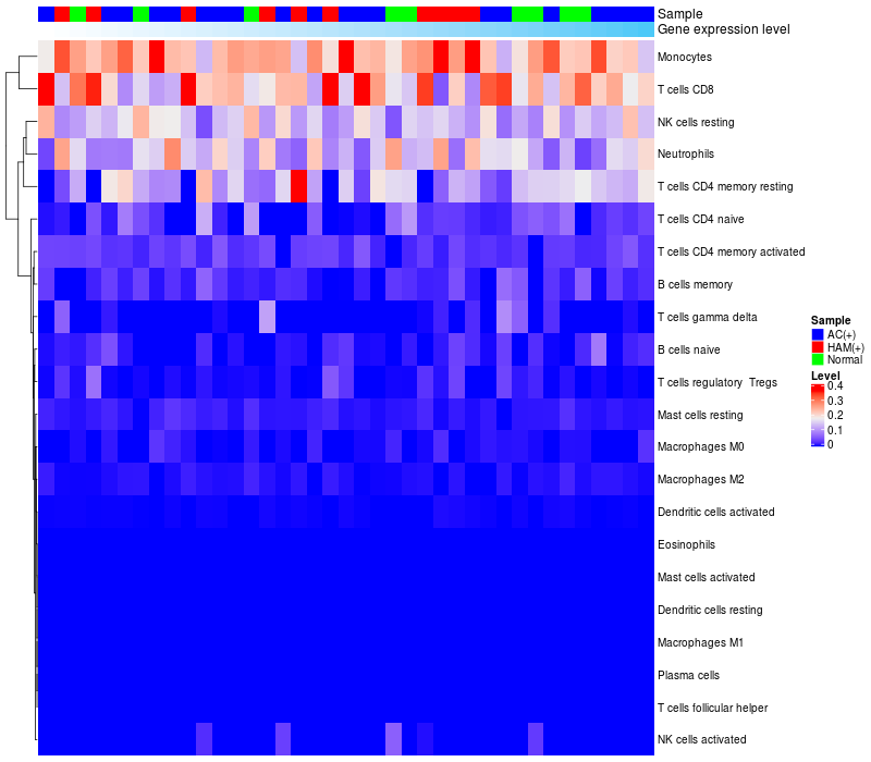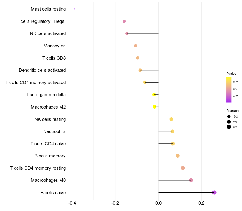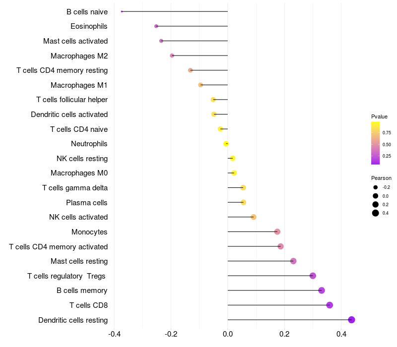 Relationship between gene expression and immune infiltrating cell level