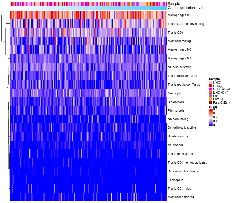 Liver hepatocellular carcinoma HCV (HBV+)(86), Liver hepatocellular carcinoma HCV (HBV-)(19), Liver hepatocellular carcinoma (HBV+)(209), Liver hepatocellular carcinoma (HBV+)(60), Paracancerous HCV (HBV+)(4), Paracancerous (HBV-)(28), Paracancerous (HBV+)(18) |