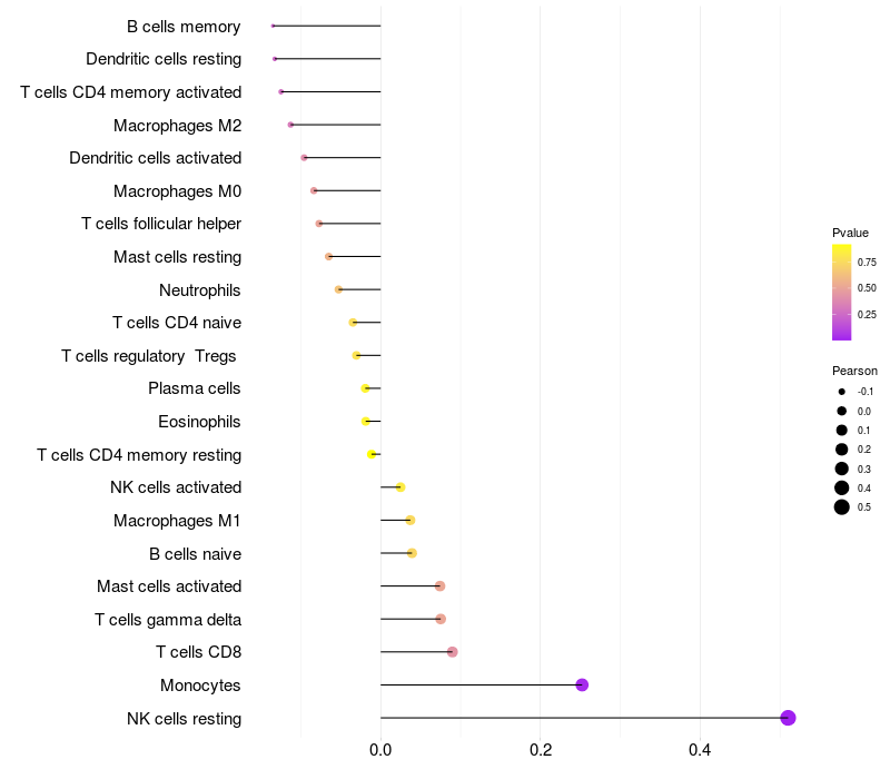 Lollipop of PRKACA expression and immune infiltrating cell level correlation result in HBV+ samples