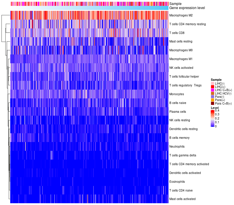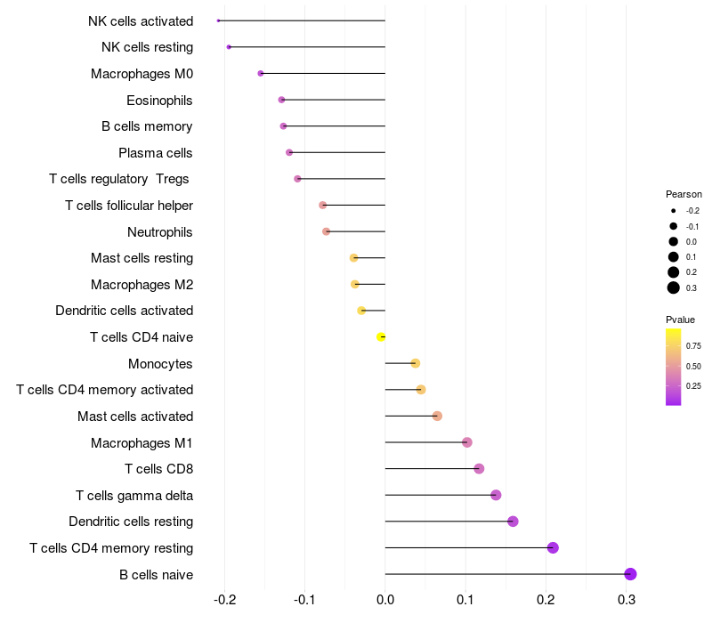 Relationship between gene expression and immune infiltrating cell level