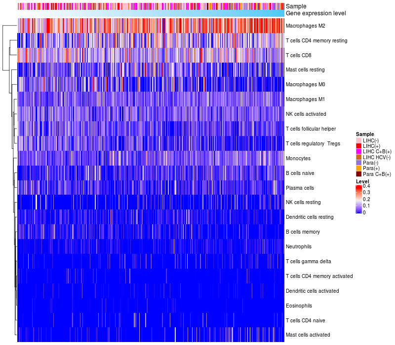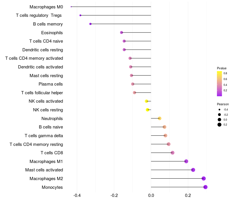 Relationship between gene expression and immune infiltrating cell level
