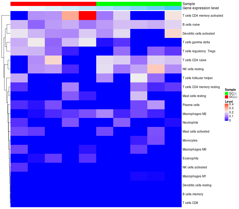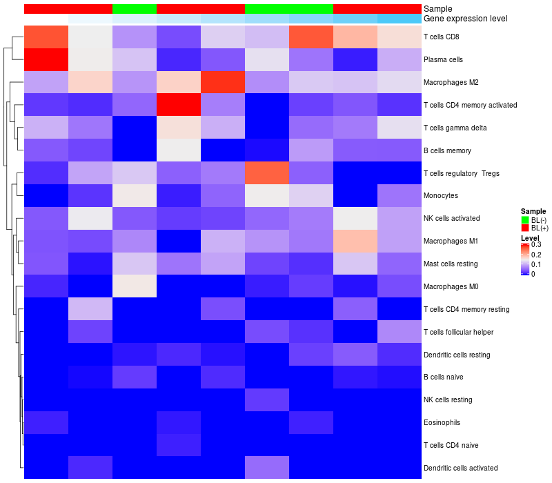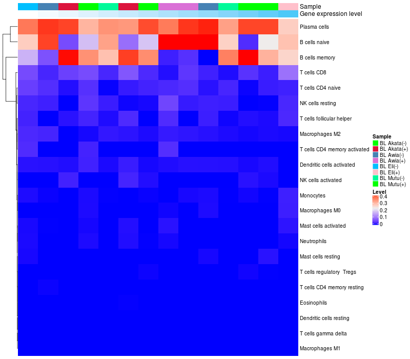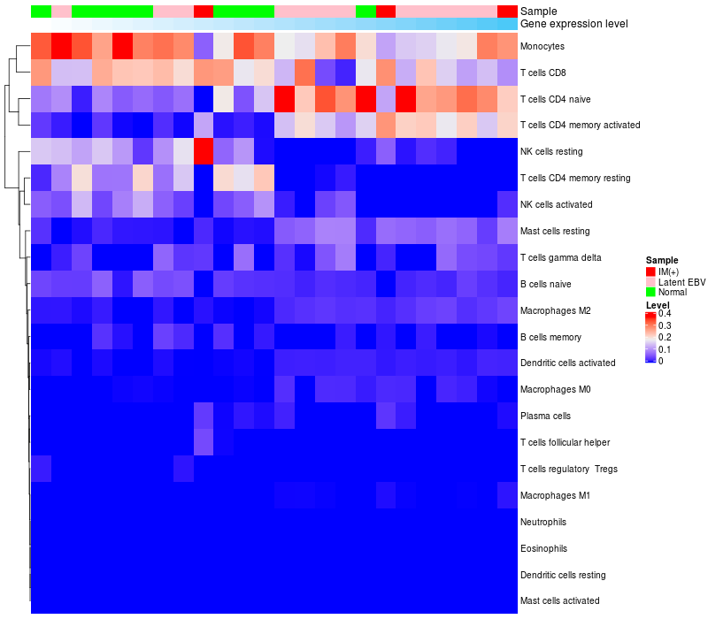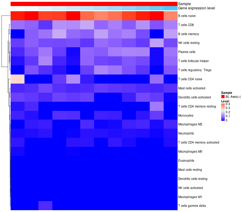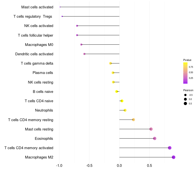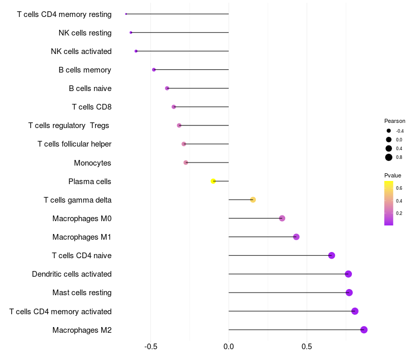 Lollipop of PRKAR1B expression and immune infiltrating cell level correlation result in EBV+ samples