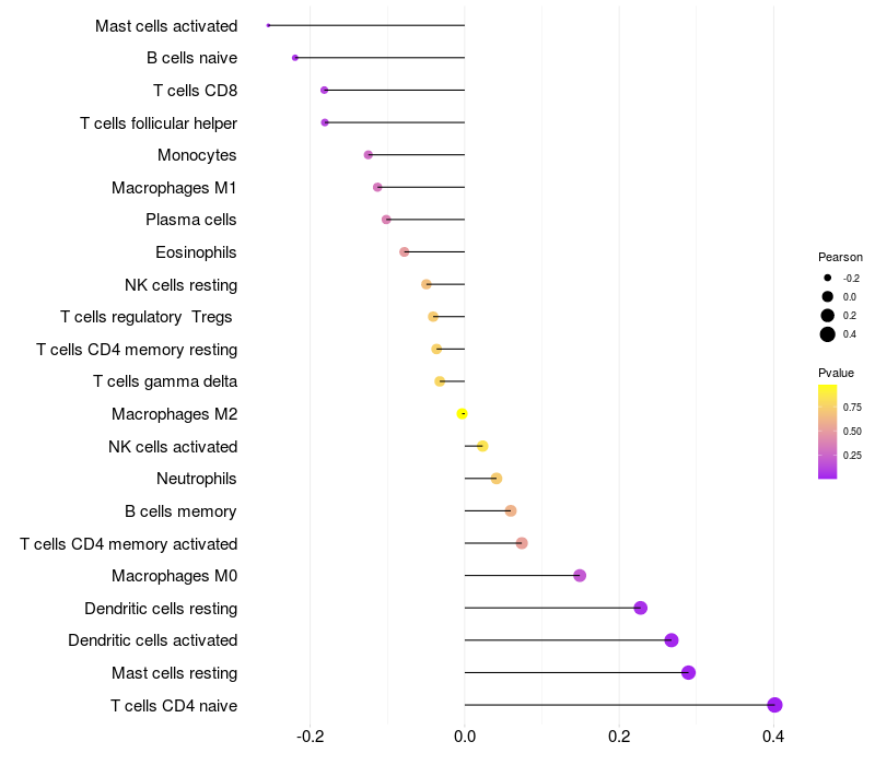 Lollipop of PRKCA expression and immune infiltrating cell level correlation result in HBV+ samples