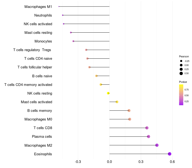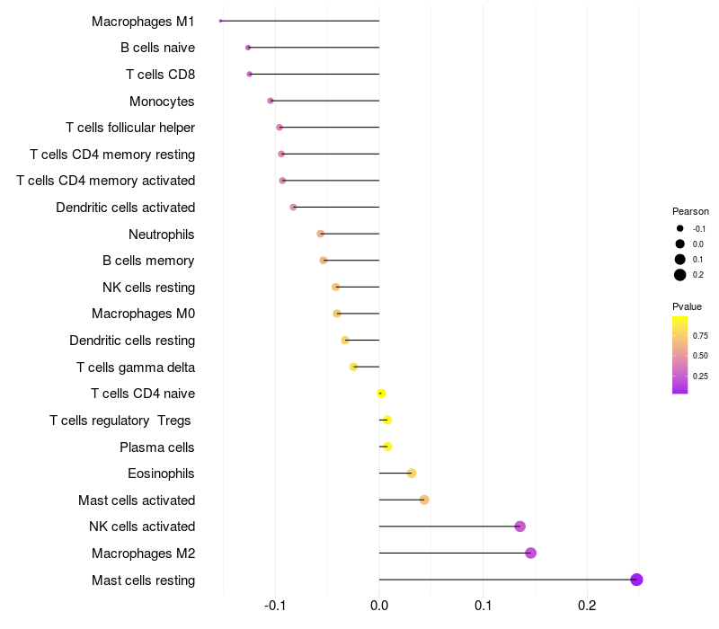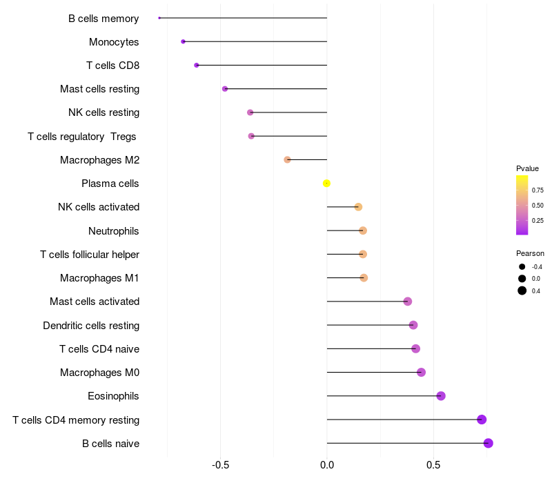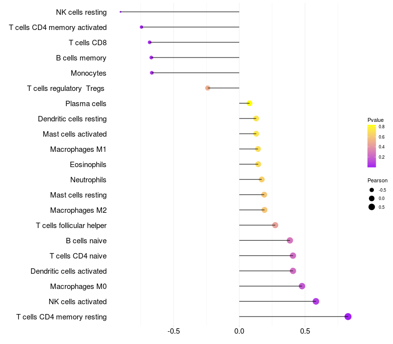 Lollipop of PRKD1 expression and immune infiltrating cell level correlation result in HBV+ Liver cirrhosis samples