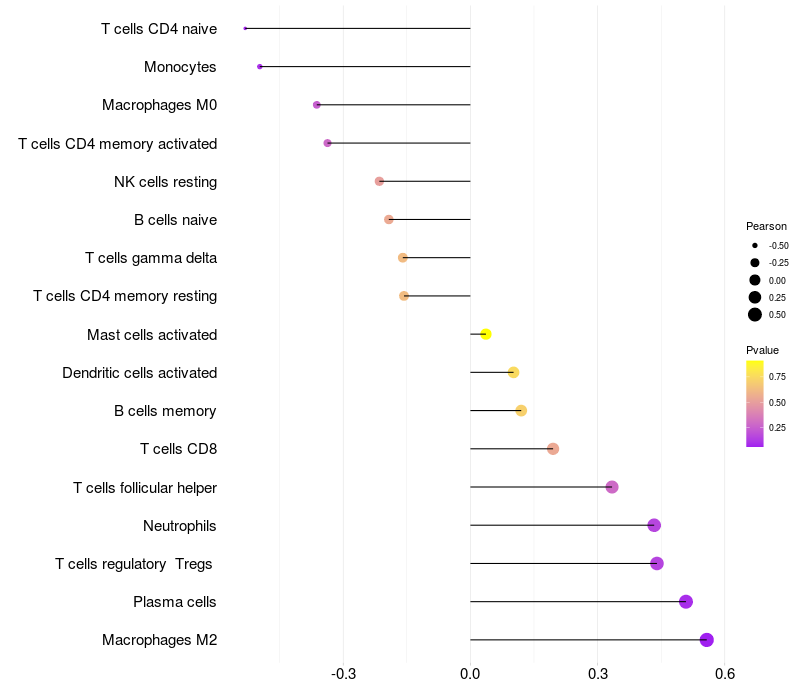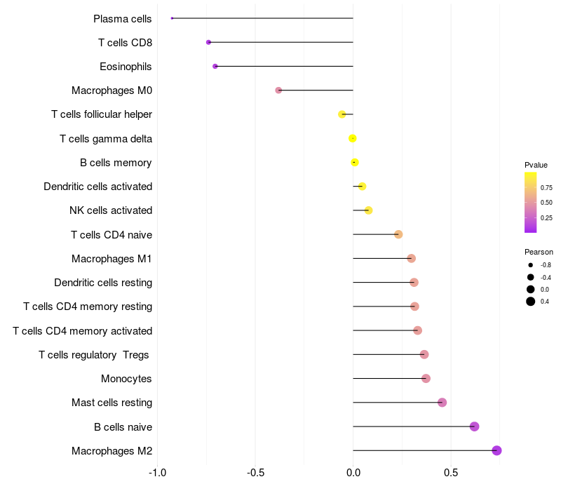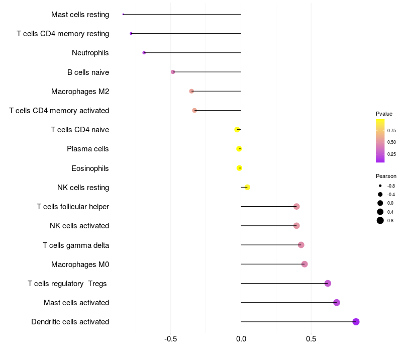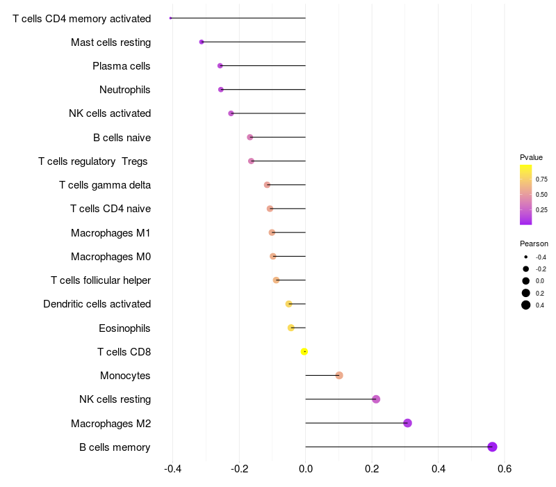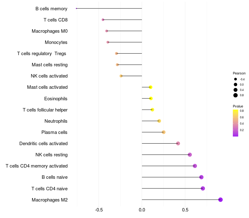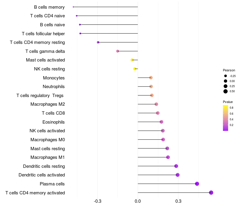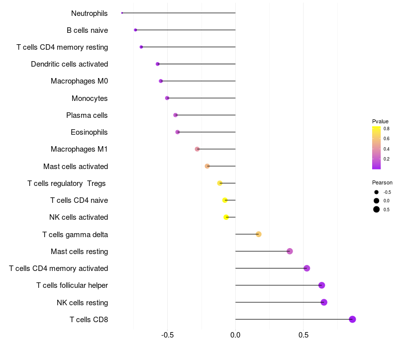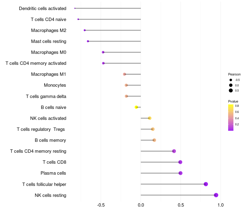 Lollipop of PRKDC expression and immune infiltrating cell level correlation result in EBV+ samples