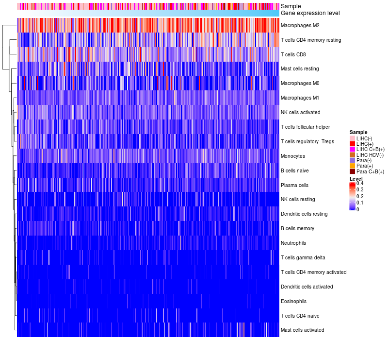Relationship between gene expression and immune infiltrating cell level
