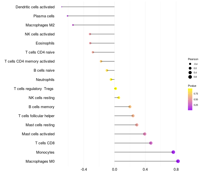 Lollipop of PRKN expression and immune infiltrating cell level correlation result in EBV+ samples