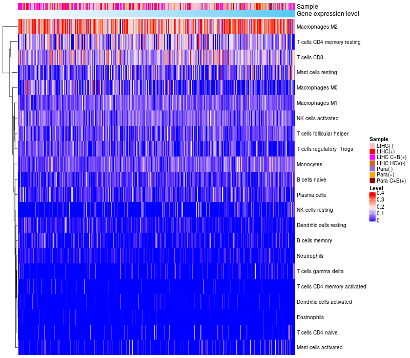 Liver hepatocellular carcinoma HCV (HBV+)(86), Liver hepatocellular carcinoma HCV (HBV-)(19), Liver hepatocellular carcinoma (HBV+)(209), Liver hepatocellular carcinoma (HBV+)(60), Paracancerous HCV (HBV+)(4), Paracancerous (HBV-)(28), Paracancerous (HBV+)(18) |