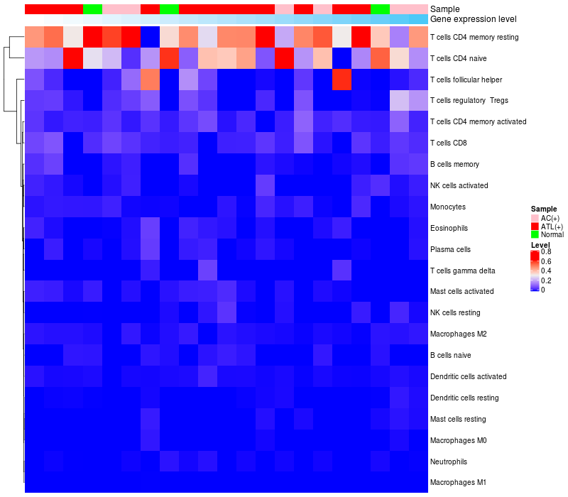 Normal (3), Asymptomatic carriers (HTLV1+)(6), Adult T-cell Leukemia-lymphoma (HTLV1+)(12) |